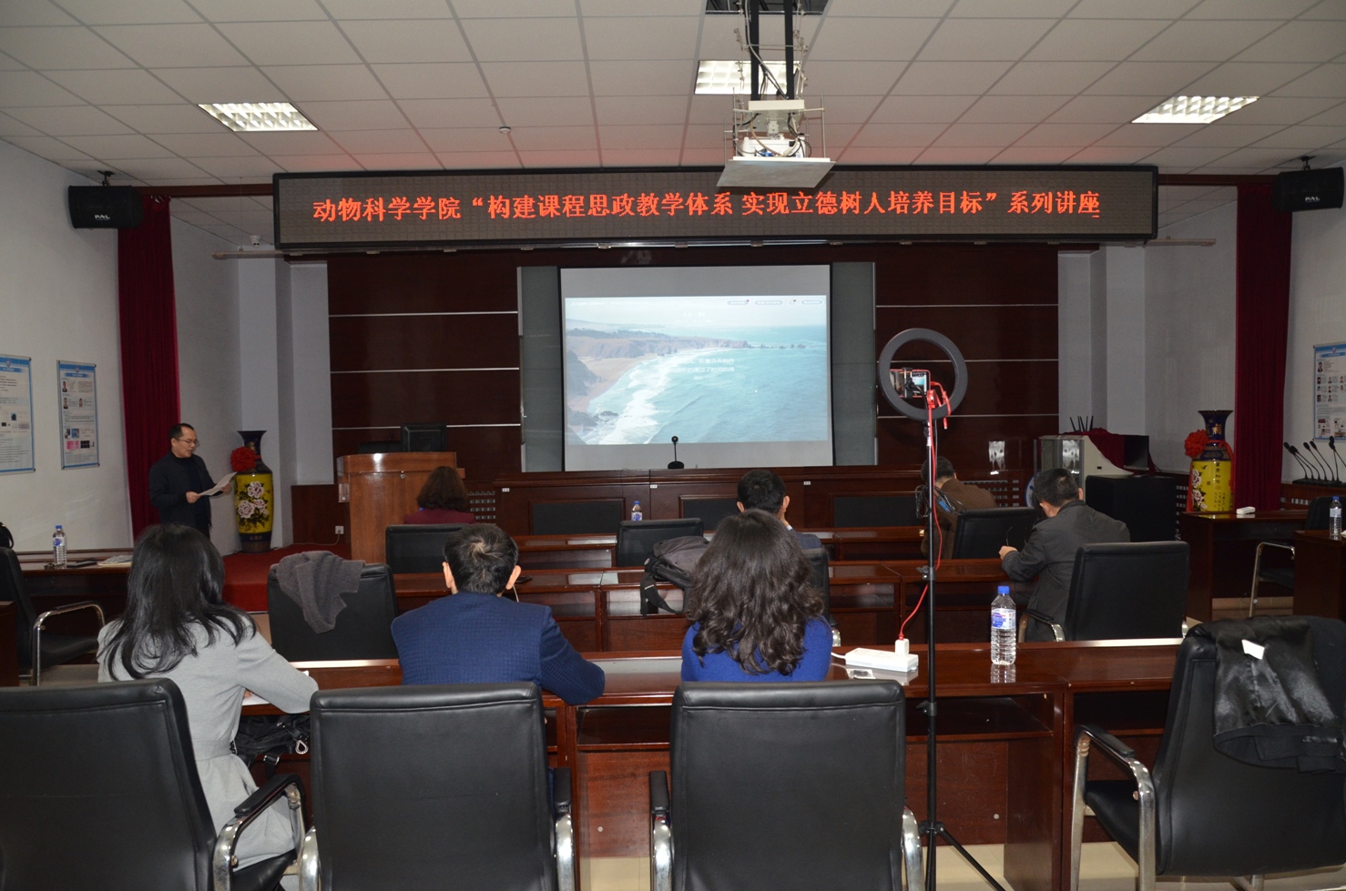 在新农科建设背景下,为建设好我校动物科学一流本科专业,进一步加强和提升我院本科教学质量,beat365英国官网网站于3月31日举办了“构建课程思政教学体系,实现立德树人培养目标”讲座活动。活动邀请吉林大学马克思主义学院教授进行了专题报告。学院相关领导、系主任及大部分教师参加了本次会议,会议由李纯锦副院长主持。