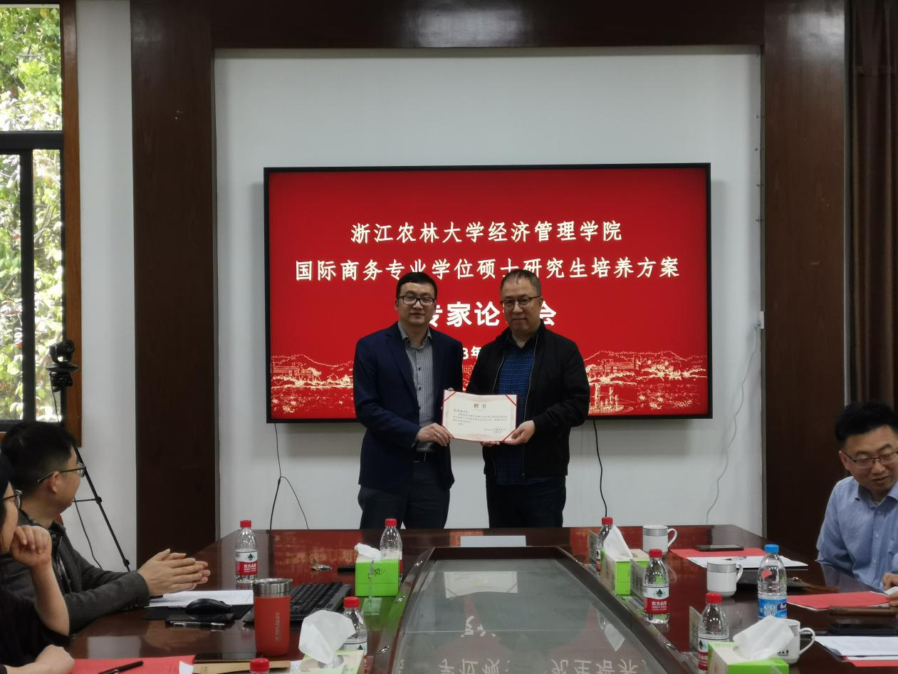 全国国际商务专业学位研究生教育指导委员会委员、浙江大学国际商务学科负责人马述忠教授担任论证专家组组长,浙江财经大学经济学院院长王正新教授、中国农业大学必赢242net官网李春顶教授、南京农业大学必赢242net官网国际商务专硕点负责人何军教授、浙江工商大学经济学院马淑琴教授、浙江省商务研究院陈芳芳院长、浙商资产战略发展部总经理冯毅等应邀担任论证专家。