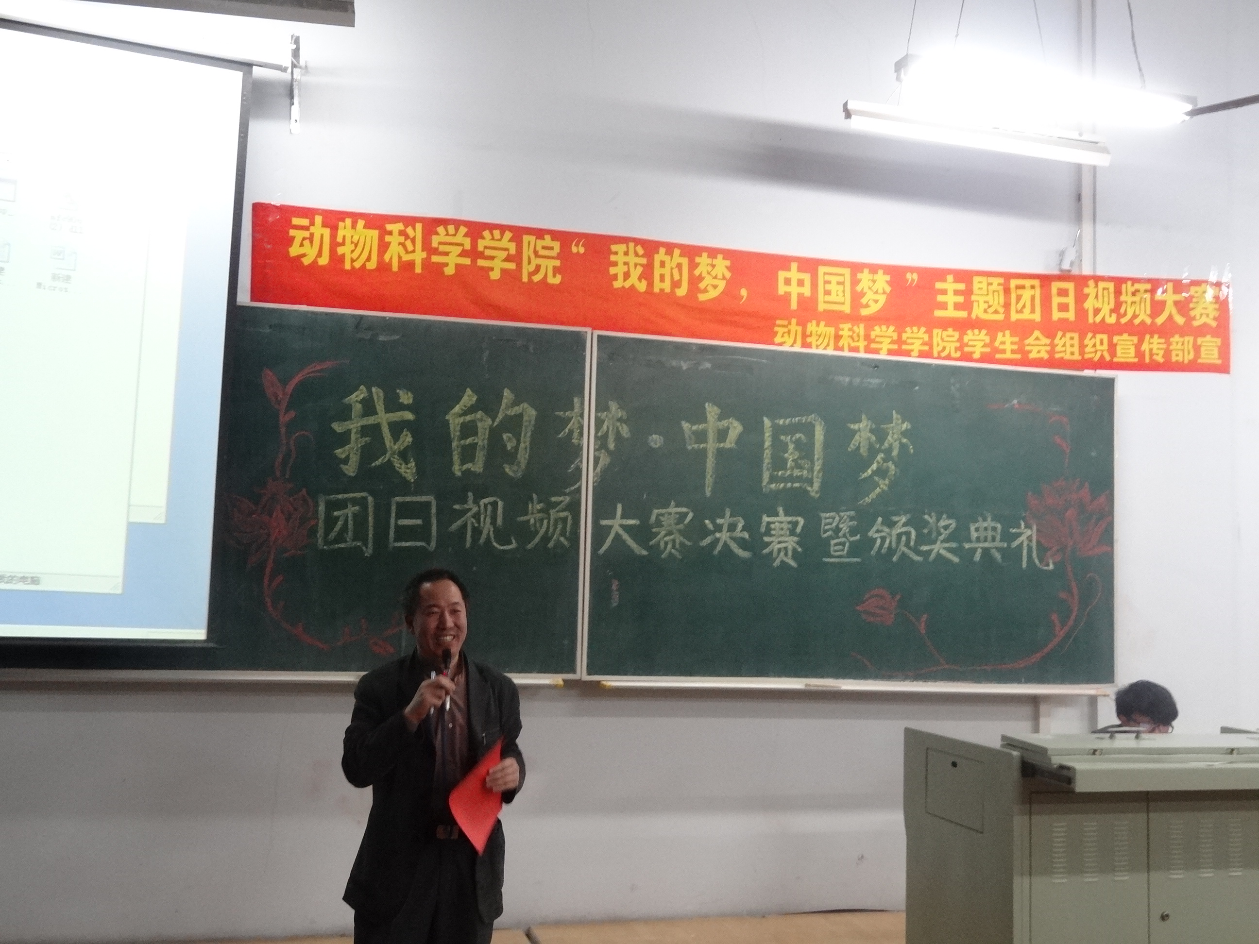激情点燃梦想,智慧照亮夜空。2013年4月25日晚,beat365英国官网网站“我的梦,中国梦”主题团日视频大赛决赛暨颁奖典礼在科学讲堂100教室拉开帷幕。莅临本次活动的嘉宾有beat365英国官网网站党委副书记曹伟光老师,学院学生工作办公室主任兼团委书记于丹丹老师,2011级、2012级辅导员曾光老师以及beat365英国官网网站第一届学生会主席团成员。
