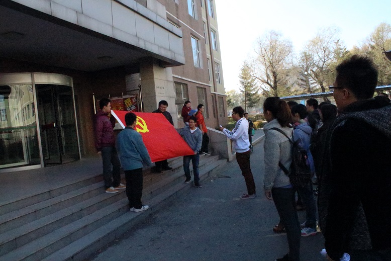 11月4日中午,beat365英国官网网站“学生党员先锋岗”设立仪式在一号公寓楼前庄严举行。学院党委副书记曹伟光、学院团委书记于丹丹、辅导员曾光及辅导员肖建荣以及beat365英国官网网站全体党员和入党积极分子参加了此次活动。