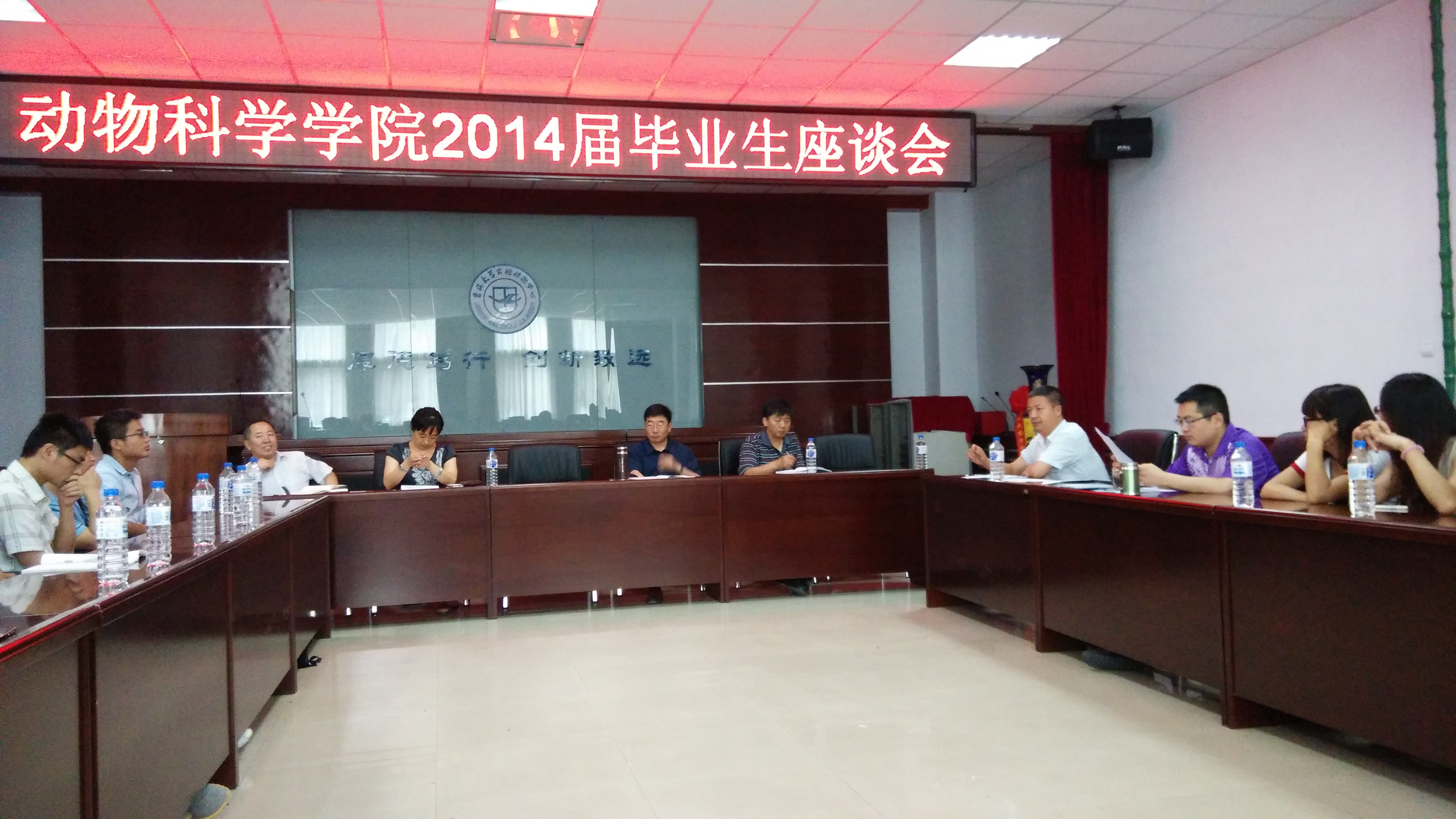 2014年6月23日下午2:00,beat365英国官网网站2014届毕业生座谈会在学院一楼会议室举行,此次座谈会以“心系动科,共谋学院长足发展”为主题,由学院党委副书记曹伟光主持,院长张嘉保教授,副院长任文陟教授,副院长于景海老师,生物技术系主任逄大欣教授,动物科学系主任沈景林教授,实验动物系党支部书记袁宝老师,各办公室主任、毕业班辅导员及14名优秀毕业生代表均到场参加。