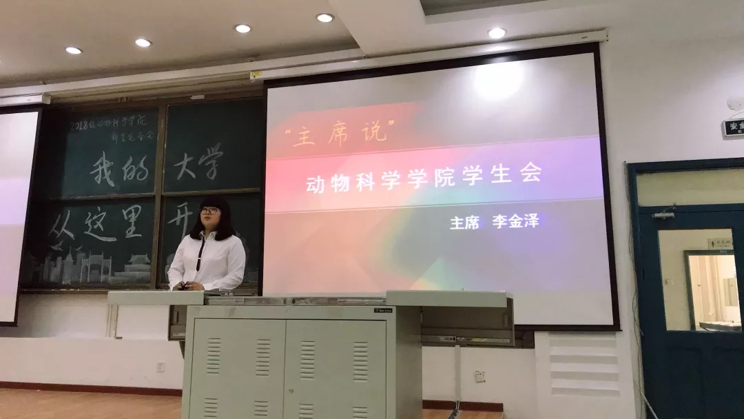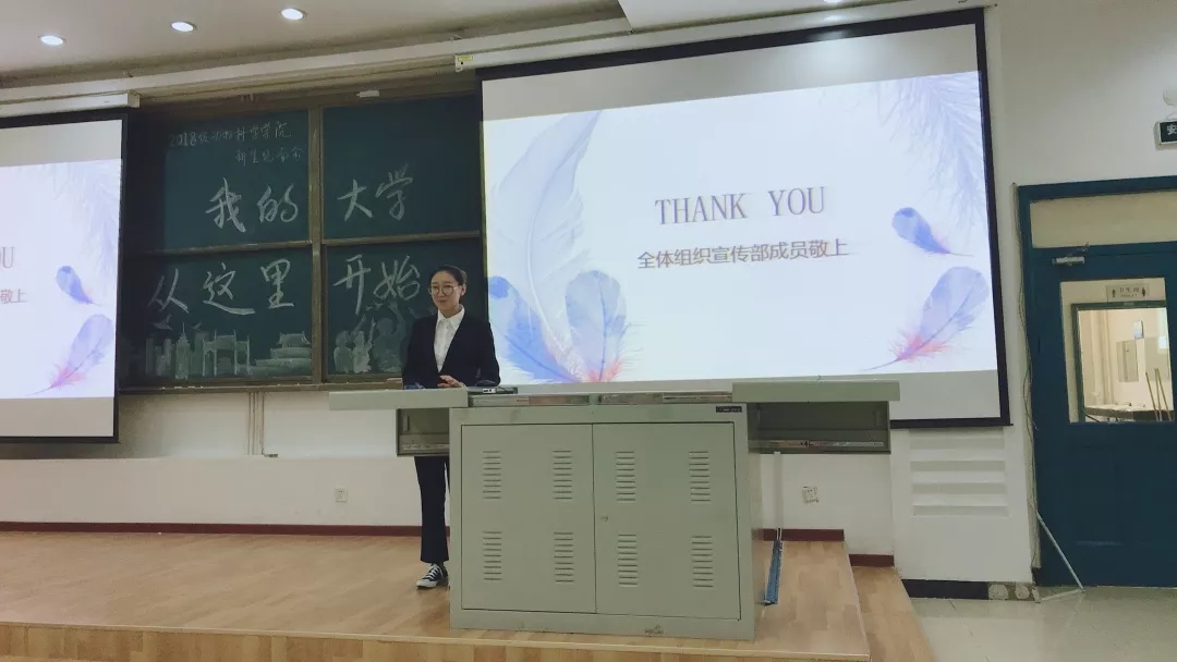 会议开始时,由主持人对学生会的职能及任务做出了一个简要而完整地概括。然后由主席及各部门部长对主席团及各部门做了具体而详细的介绍。每个人都配合着自己部门精心制作的PPT,用自己的风格给大一新生们做了精彩的讲解。亲切的主席李金泽,严肃的副秘书长吕焱,端庄的文艺民族部部长李璐,幽默的体育部部长白元滨,可爱的组织宣传部部长段雨含,温柔的生活学习心理部部长肖雯予以及实在的外联志工部部长余霆杰。不仅仅是上台发言的部长们,各部门的副部长们也为本次宣讲会做了许多准备工作。大一新生们也从这些风格不同的介绍中,对学生会有了自己的了解。而在接下来的提问环节中,大一新生们也积极地和学长学姐们互动,提出了许多自己想要了解的问题。最后主持人说了结束词,本次新生宣讲会在一片欢乐的气氛中圆满结束。