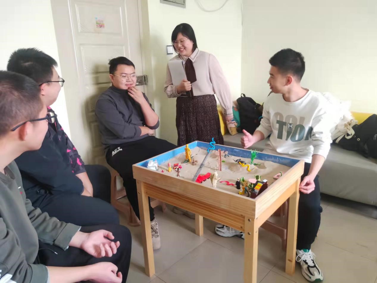 为积极响应学生心理健康指导中心2021年“朋辈协力·心理成长”系列活动的号召,引导同学们更好地认识自己、调适自己,走出困扰,缓解心理压力,beat365英国官网网站于2021年12月5日下午组织本科生开展了“未来的一天”主题团体沙盘体验活动,活动在学院心理团体辅导室举办,7名本科生分成两组先后参加活动。