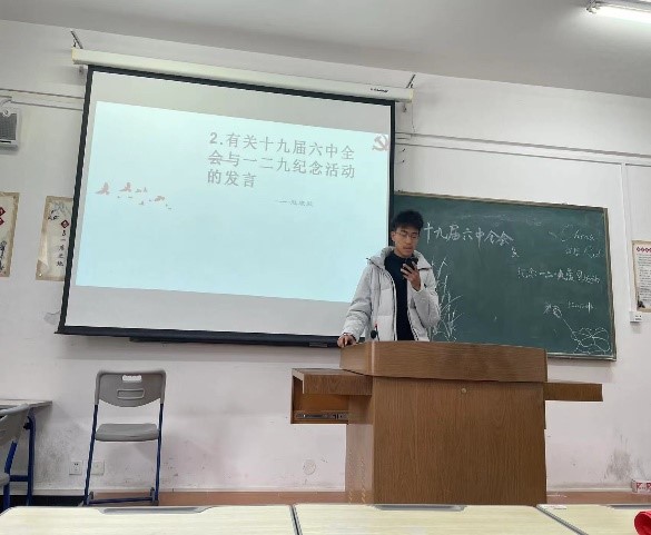 紧接着,四名学生干部代表围绕十九届六中全会精神纷纷发表了学习心得,结合各自学习生活实践,表达了自己的观点。