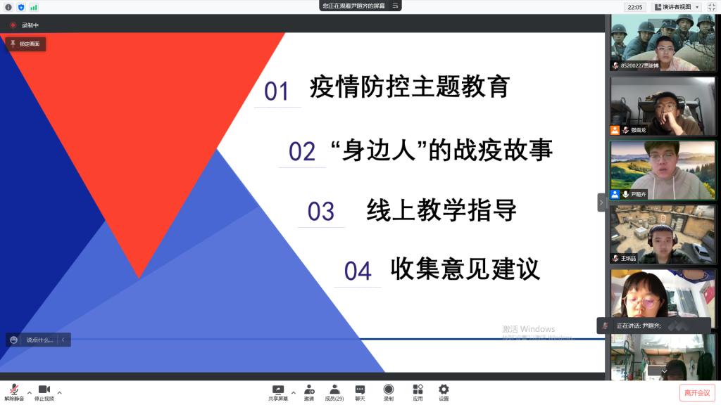 召开本次线上班会有效的缓解了全班同学在疫情形势下的担忧情绪,积极引导大家配合学校工作积极贡献属于自己的一份力量。