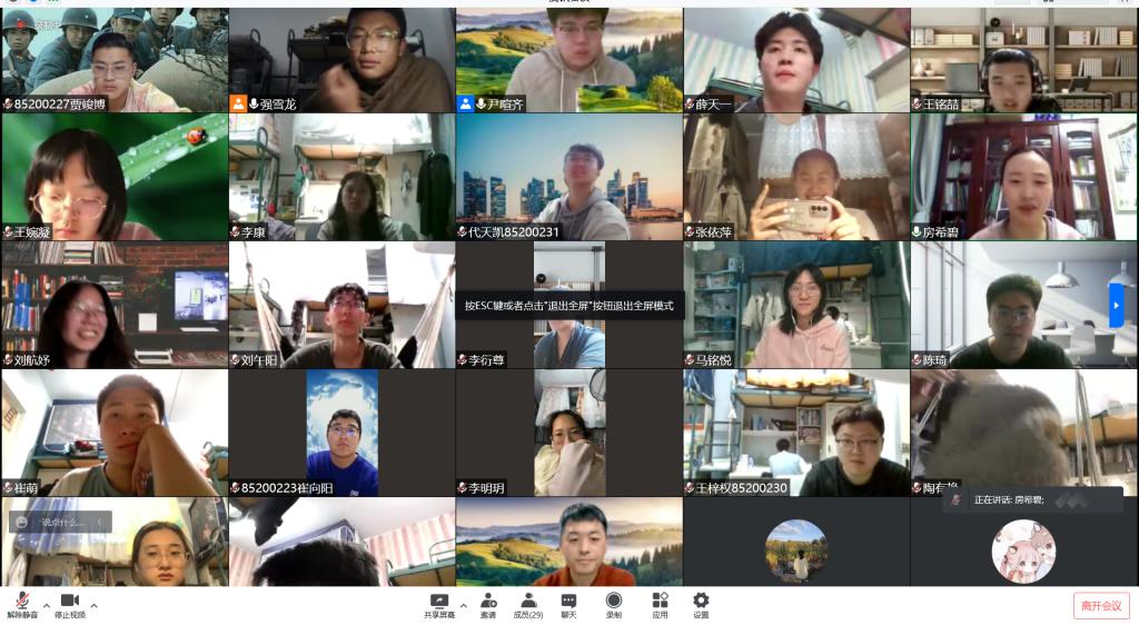 班会伊始,班主任老师们向同学们传达了学校疫情防控工作的各项要求并向同学们开展线上学习指导:引导同学们要积极调整心态和学习方法,强化自律意识,适应从线下学习到线上学习方式的转变,在课堂上要积极与老师互动,给予老师课程反馈,及时发现并解决问题,做到安全健康和线上学习两不误。随后,各年级辅导员针对不同年级的实际情况,为同学们开展疫情防控主题教育。