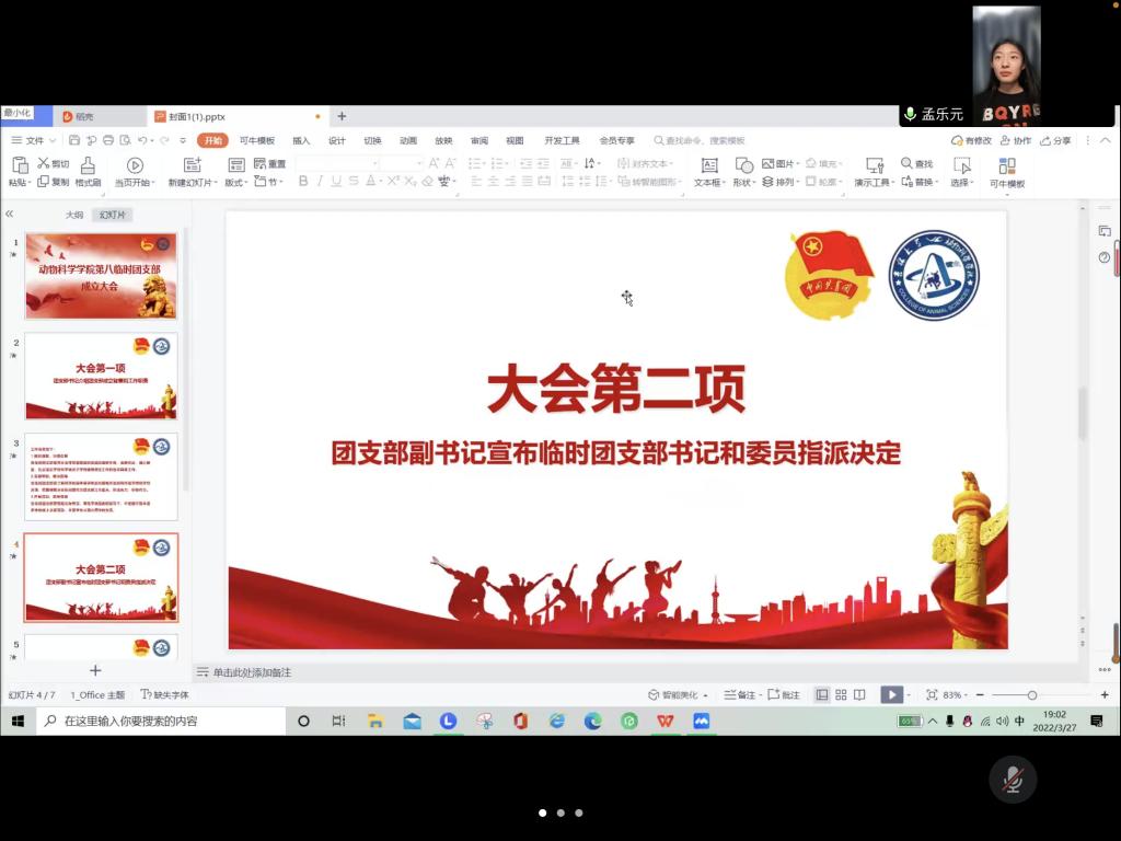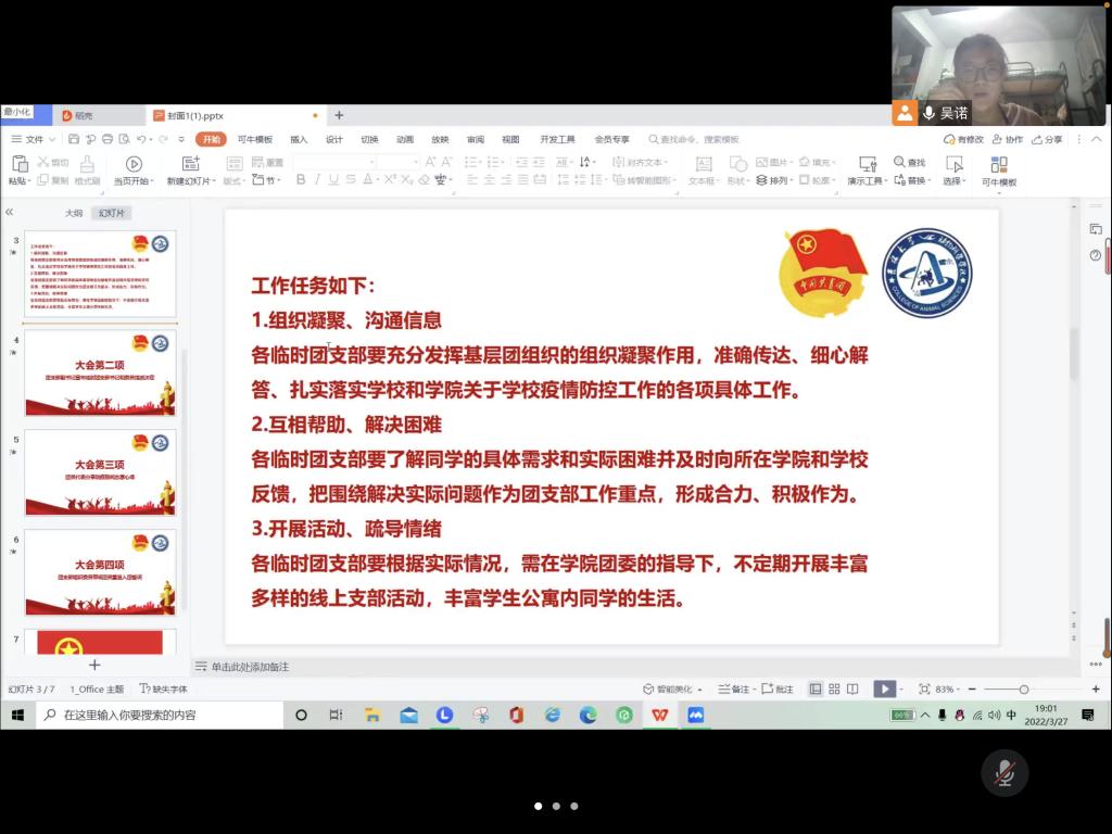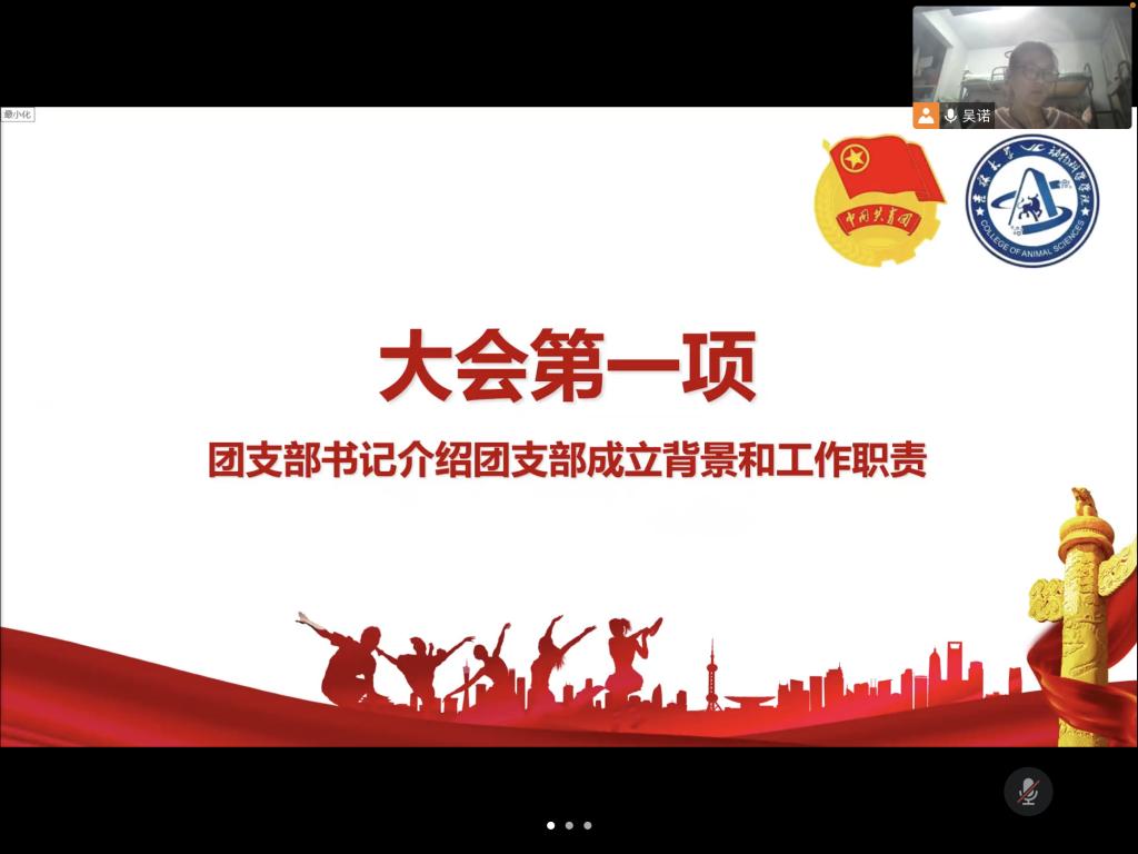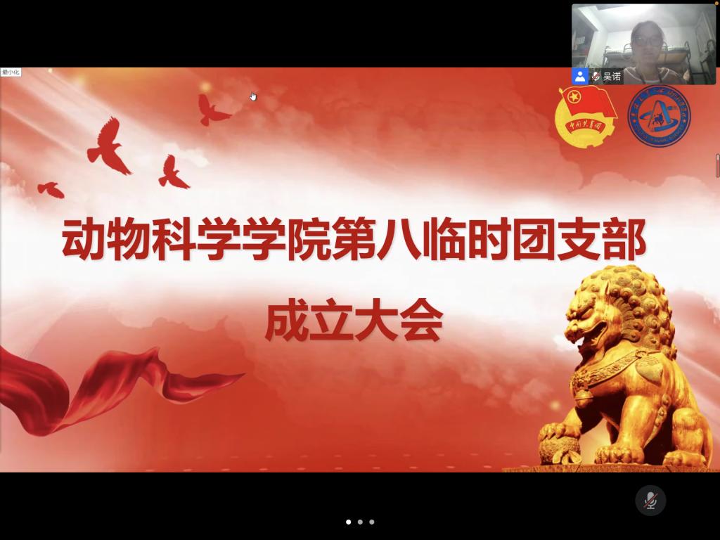 习近平总书记说:“共青团是党的助手和后备军,是党的青年工作的重要力量”。根据《关于疫情防控期间成立临时团支部的通知》,应校团委防疫时期加强组织凝聚力并充分发挥共青团组织在防疫控疫工作中的战斗堡垒作用及团员的先锋模范作用,强化团的基层建设的要求,我院面向疫情防控时期在临时工作岗位的共青团员建立临时团支部。2022年3月27日晚七时,我院成功召开beat365英国官网网站第八临时团支部成立大会。由18级动物科学专业,19级动物科学专业以及20级三班在内的全体在校女生参加会议。会议由第八临时团支部书记吴诺主持。