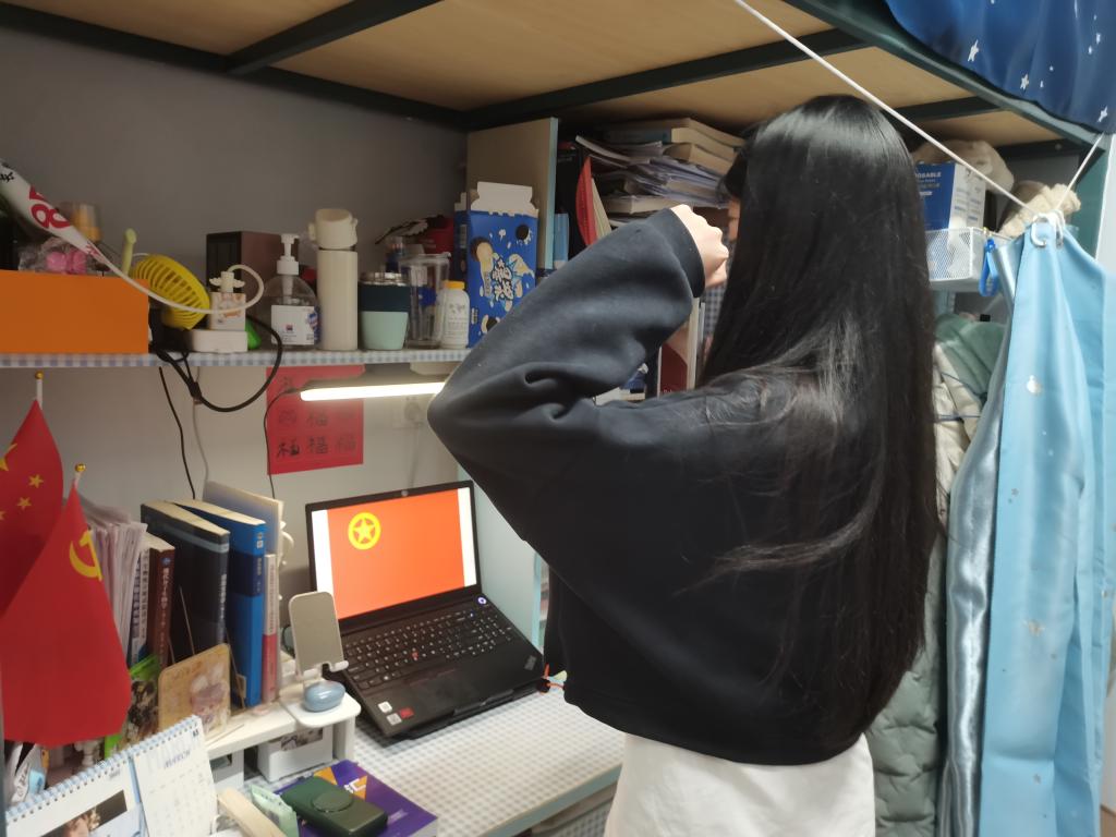 随后,邀请了两位在本次疫情防控期间表现积极,敢于担当的志愿者分享心得。两位志愿者表示自封校以来,志愿者的服务经历了巨大的改变,一方面志愿者之间的配合变得更加默契。由于最初出现遗漏或缺少物资等问题,志愿者们建立了志愿者群,便于相邻楼层进行餐食补充。同时,在补充超市物资方面,为减轻学校抗疫防控负担,从学生分楼层下楼领取变成志愿者送货上门,减轻疫情风险。另一方面,运送工具也有了很大的进步。由最初的人力拉袋子运送变为借助小推车运送,这不仅减轻了志愿者的负担,还极大的减少了磕碰漏菜的现象,充分利用了可利用的工具,也间接地减轻了卫生管理的负担。