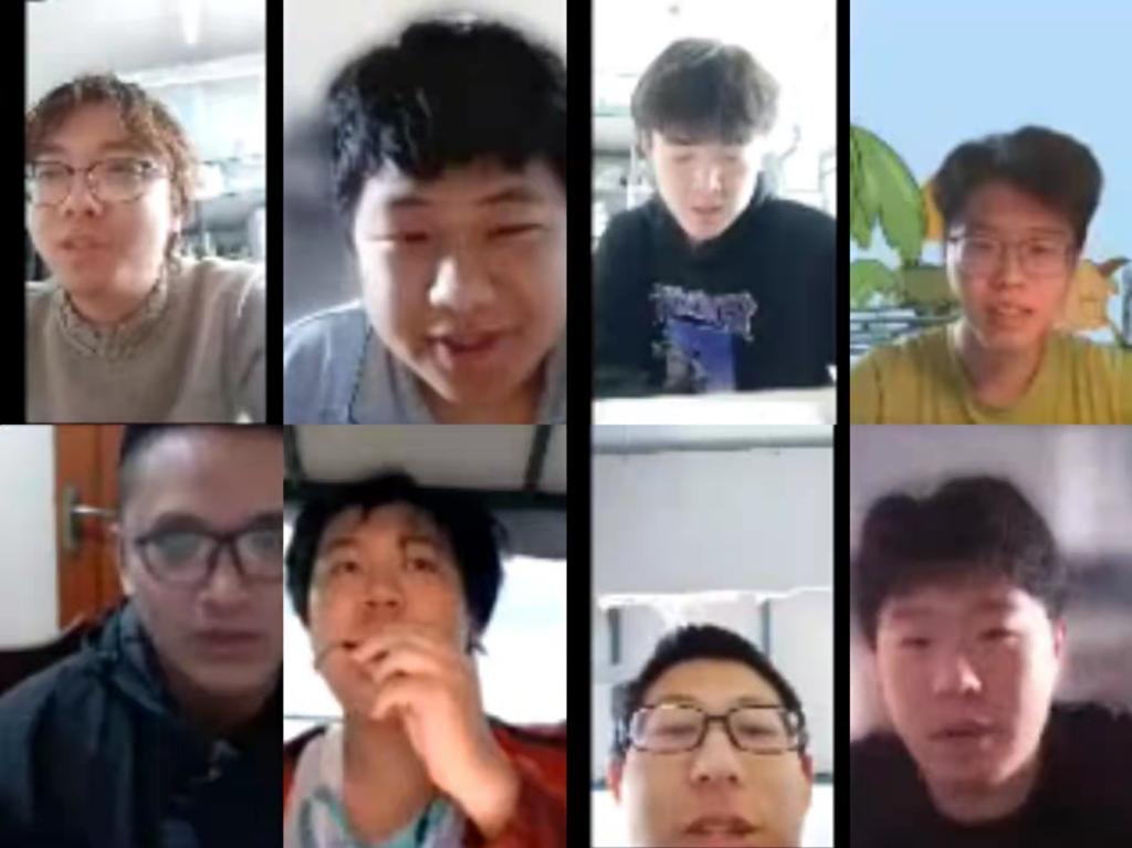 最后,支部成员王东博、李宗轩、于贤材、陈柏行、张子骁五位同学分享了自己封闭管理或居家期间的学习生活,为在校同学加油打气,表达同心抗疫的信心与决心。在校居住的同学也分享了自己在公寓参加志愿服务工作的所思所感,以及自己在学校实施封闭管理以来的心路历程,大家先后表达了对国家和学校的信任与感谢。
