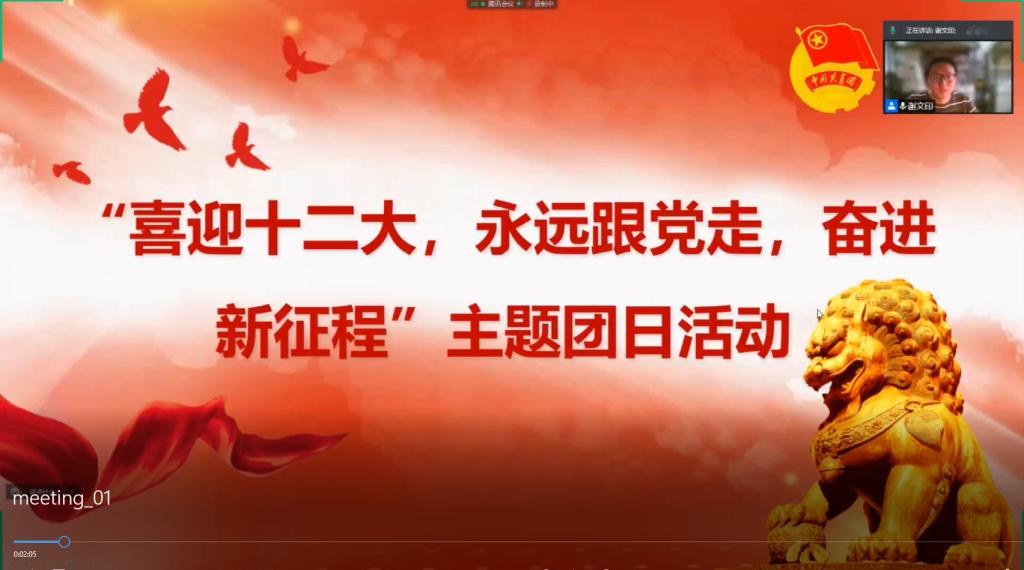 为响应团中央号召,学习宣传贯彻习近平总书记关于疫情防控工作的重要讲话重要指示精神,贯彻落实校院两级疫情防控工作部署要求,保证广大青少年每日作息健康,团结青少年坚定跟党走、建功新时代。beat365英国官网网站第三临时团支部于2022年4月10日下午5时依托腾讯会议开展“喜迎二十大、永远跟党走、奋进新征程”主题团日活动,活动由团支书谢文印主持。