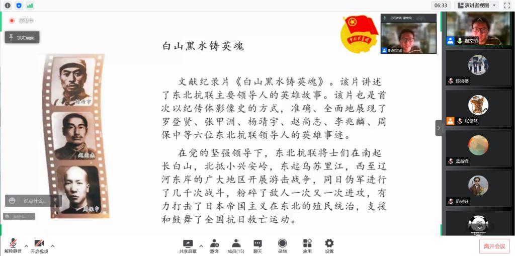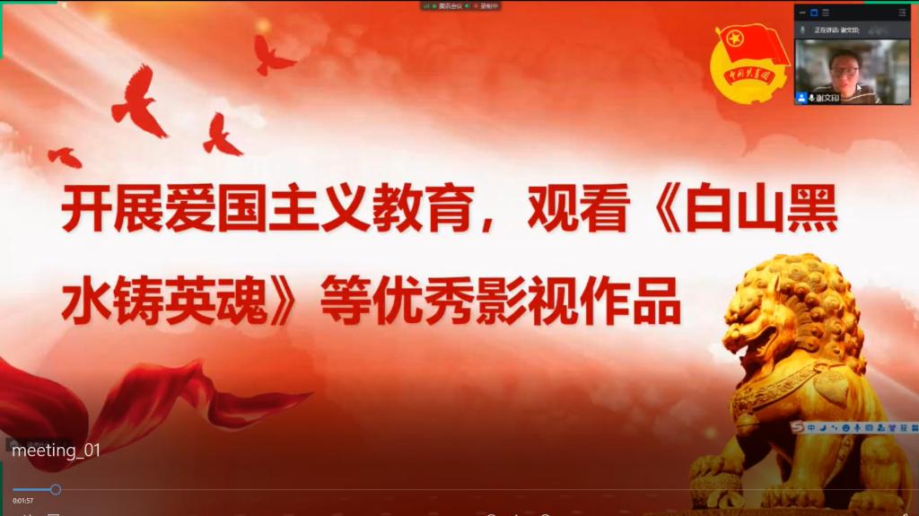 为丰富同学们隔离期间的生活,缓解学生的心理压力,弘扬主旋律、传递正能量,beat365英国官网网站第三临时团支部积极响应团组织号召,于4月10日通过腾讯会议线上开展了爱国主义教育观影活动,组织观看了《白山黑水铸英魂》《人世间》等优秀影视作品。