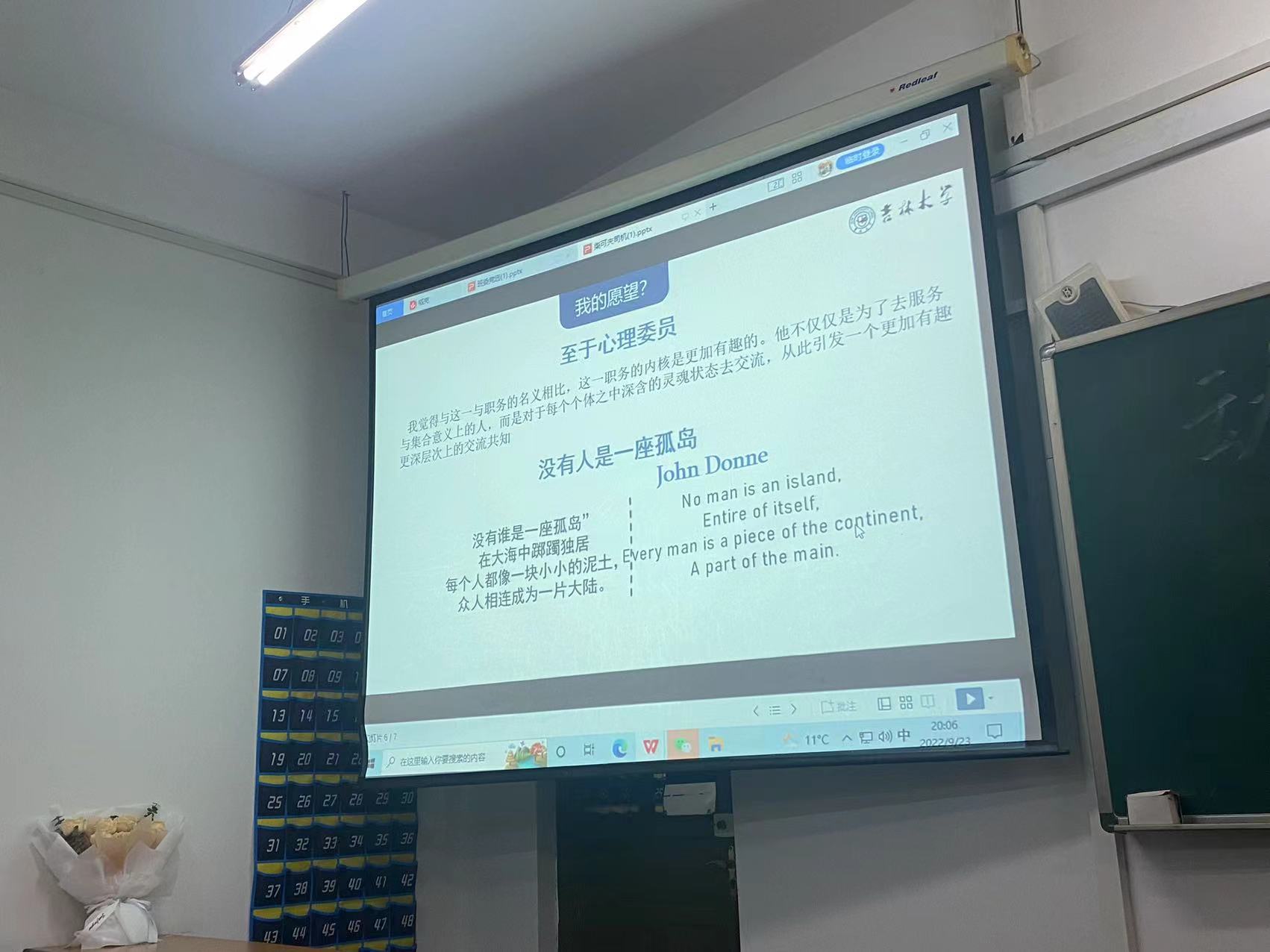 为了保证新生班级工作的有序开展,加强班级凝聚力和向心力,beat365英国官网网站2022级三个本科生班级于9月下旬在和平校区科学讲堂先后开展第一次线下班会暨班团干部竞聘活动。各班班主任、辅导员及辅导员助理均到场参加各班班会,班会由各班新生辅导员助理主持。