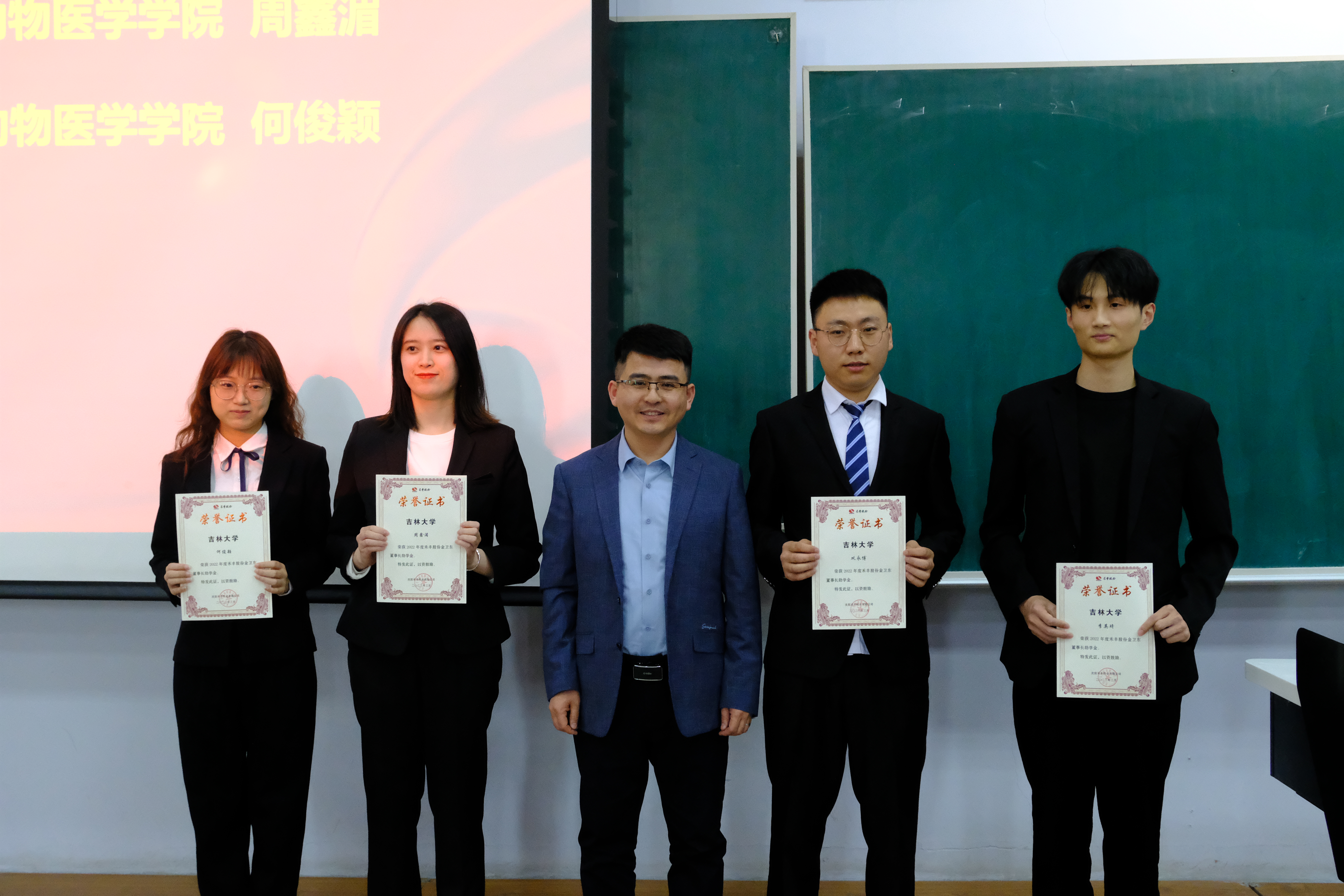 据了解,“金卫东董事长助学金”是由禾丰股份董事长金卫东先生个人出资捐助,旨在帮助家庭经济困难的本科学生顺利完成学业,奋发向上。“禾苗奖学金”充分鼓励先进,奖优促学,引导当代大学生成为德智体美劳全面发展的时代新人。beat365英国官网网站、动物医学学院与禾丰股份的合作充分发挥了校企合作的优势,完善了校企合作资助育人体系,拓展了资助育人路径,提高了受助受奖学生的综合素质和竞争力。获奖同学在活动后纷纷表示,将在未来的学习生活中更加努力,以此为起点,刻苦学习,勤奋工作,以更加优秀的成绩来回报禾丰、回报母校、回报社会。