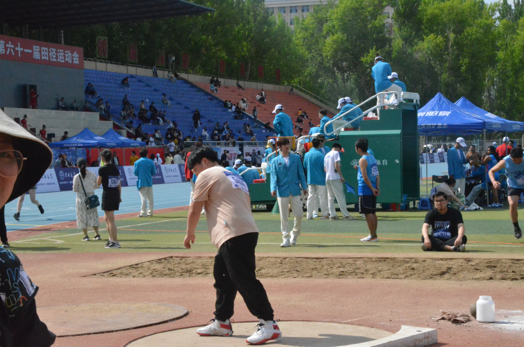 在跳高项目中,我院的参赛同学发挥出色,敢于挑战自己。