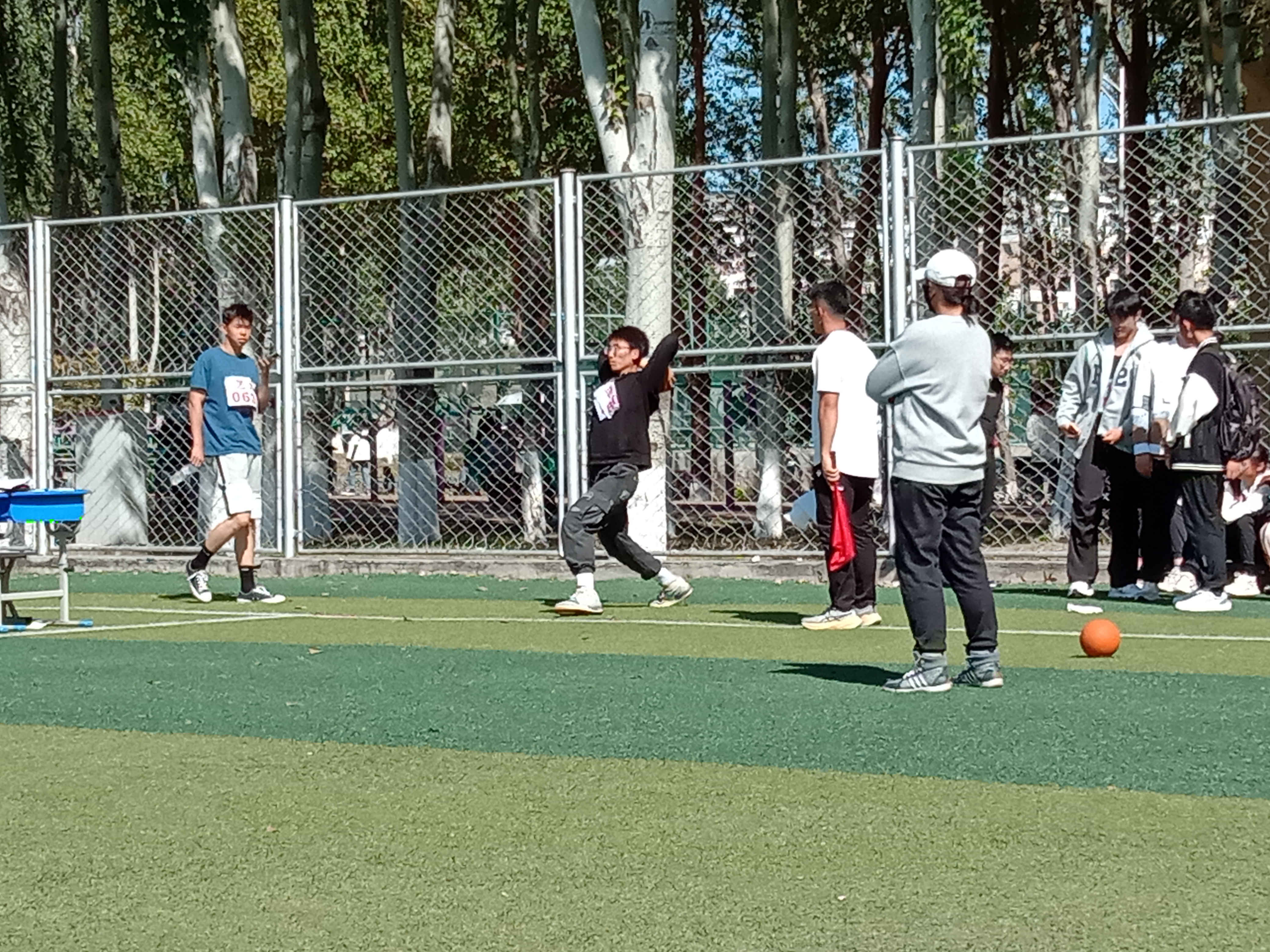 掷实心球和胶球掷远项目是需要极大的力量和技巧运用的运动。一颗颗胶球在碧绿的球场上划出美丽的弧线,碧空中尽显力量与轻盈。