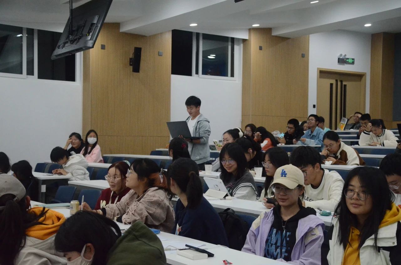 综合事务部负责人黄靖淞、校园文化部负责人都坤、学生服务部负责人竹忠颖分别从部门职能、承办活动和未来规划等方向介绍了学生会三大部门。此外,学院足球队成员程浩轩、于贤材对学校的足球比赛赛制和学院的足球队历史进行了介绍,希望更多有足球爱好的新生加入;辩论队队长刘展鹏分享了自己参加辩论赛的经验和收获,希望更多热爱辩论的同学积极报名学院接下来开展的“思辨杯”辩论赛。