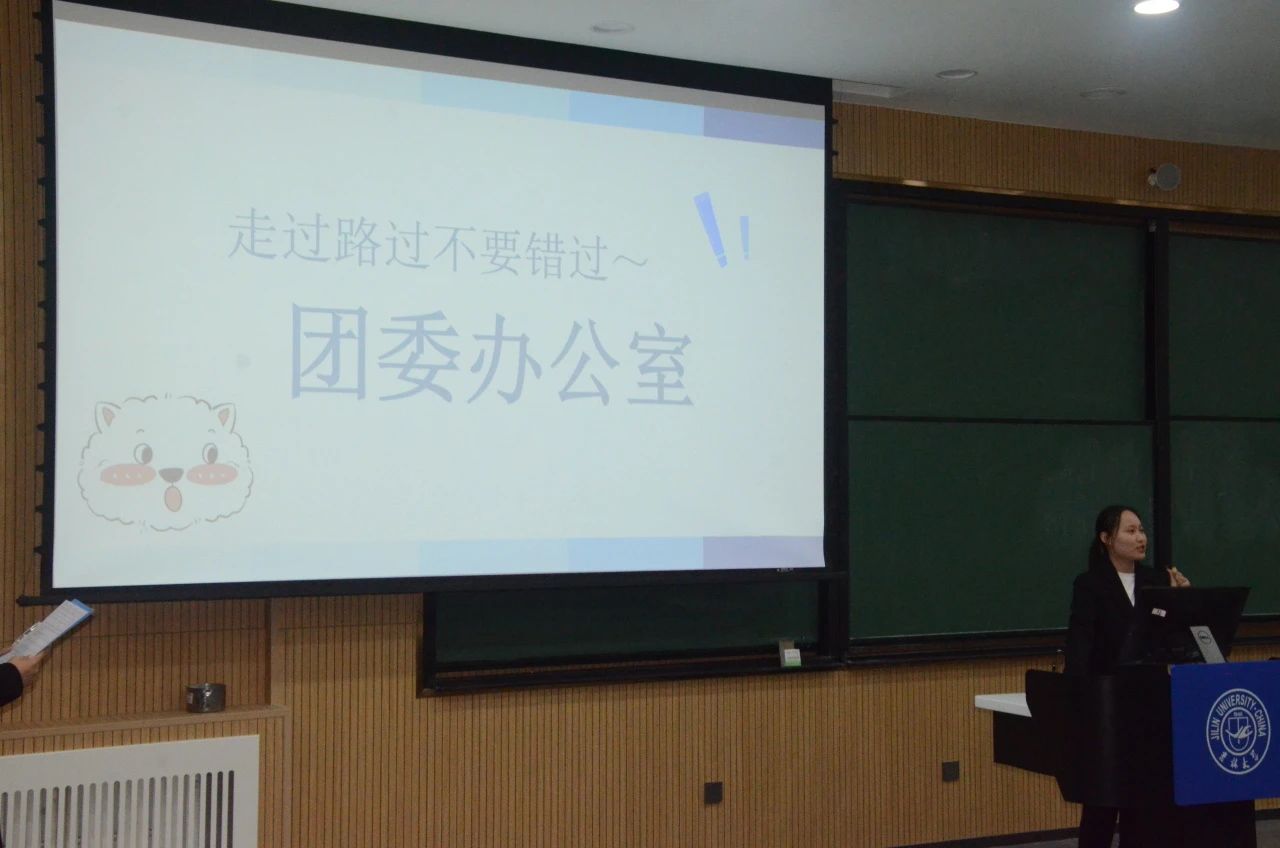 在学院团委宣讲环节,团委副书记李尚泽、皇甫开心对学院团委的整体情况进行了介绍,展示了团委活动活泼而又多彩的一面,对新生们所关心的大学入团入党等相关问题进行了讲解。团委办公室负责人蒋鑫淼、组织部负责人郭诗萌、志工部负责人张敬宜和心理部负责人杨明达分别进行了部门介绍。