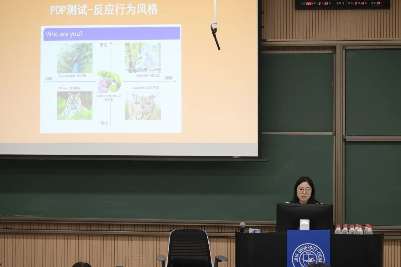 讲座中,杜娟首先邀请同学们进行了“PDP反应行为风格测试”和“MBTI人格职业性格测试”,帮助参会同学对自己的性格特点及匹配职业方向进行初步了解。随后,杜娟从“选择目标岗位”“做好面试准备”“面试环节技巧”等三个方面进行讲解,并围绕如何获取招聘信息、怎样选择合适公司、简历制作要点以及各类面试技巧等细节展开。她希望同学们可以认识自己的状态,调整自己的心态,放平自己的姿态,了解外界的动态,并鼓励同学们从多途径加深对面试的认知,更有信心地在求职过程中表达自己,祝愿大家收获心仪的工作岗位,实现自身价值。