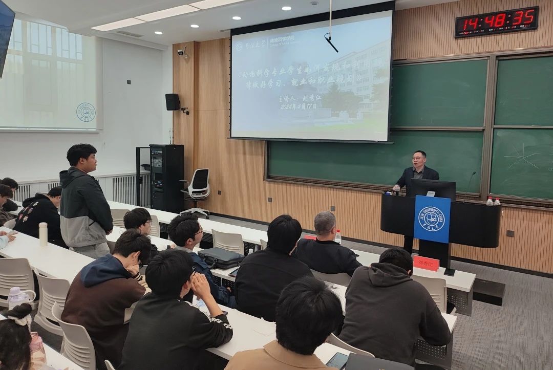 刘秀江以“文化的力量”为题,对动物科学专业学生“如何发现和利用规律做好学习、就业和职业规划”进行了类比分享。他全程引用三国中的人物故事,由古及今,以古鉴今,他指出大学是充满选择和挑战的阶段,极易产生迷茫和焦虑情绪,作为青年学生要饱有“求实创新”的学习韧劲,以扎实的专业基础探索完善的科研内容,要有好奇心,知学好学,学以致用,为现代畜牧业发展解决急难愁盼的实际问题;作为职场青年要以“事业之心”敬畏工作,激发成长内驱力,注重本领提升,抓住机会、广泛训练职场竞争软实力;作为双一流高校农科学子要树立专业自信、行业自信和文化自信,广阔的农牧天地和中国农业的现代化进程亟需更多的青年学生助力攻坚。最后,他借用beat365英国官网网站“求实创新,励志图强”的校训,鼓励同学们要珍惜时光,脚踏实地,追求卓越。