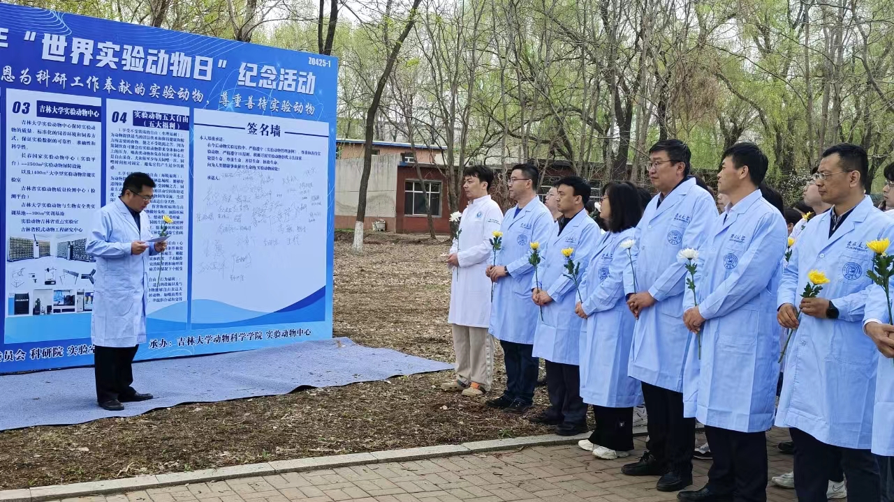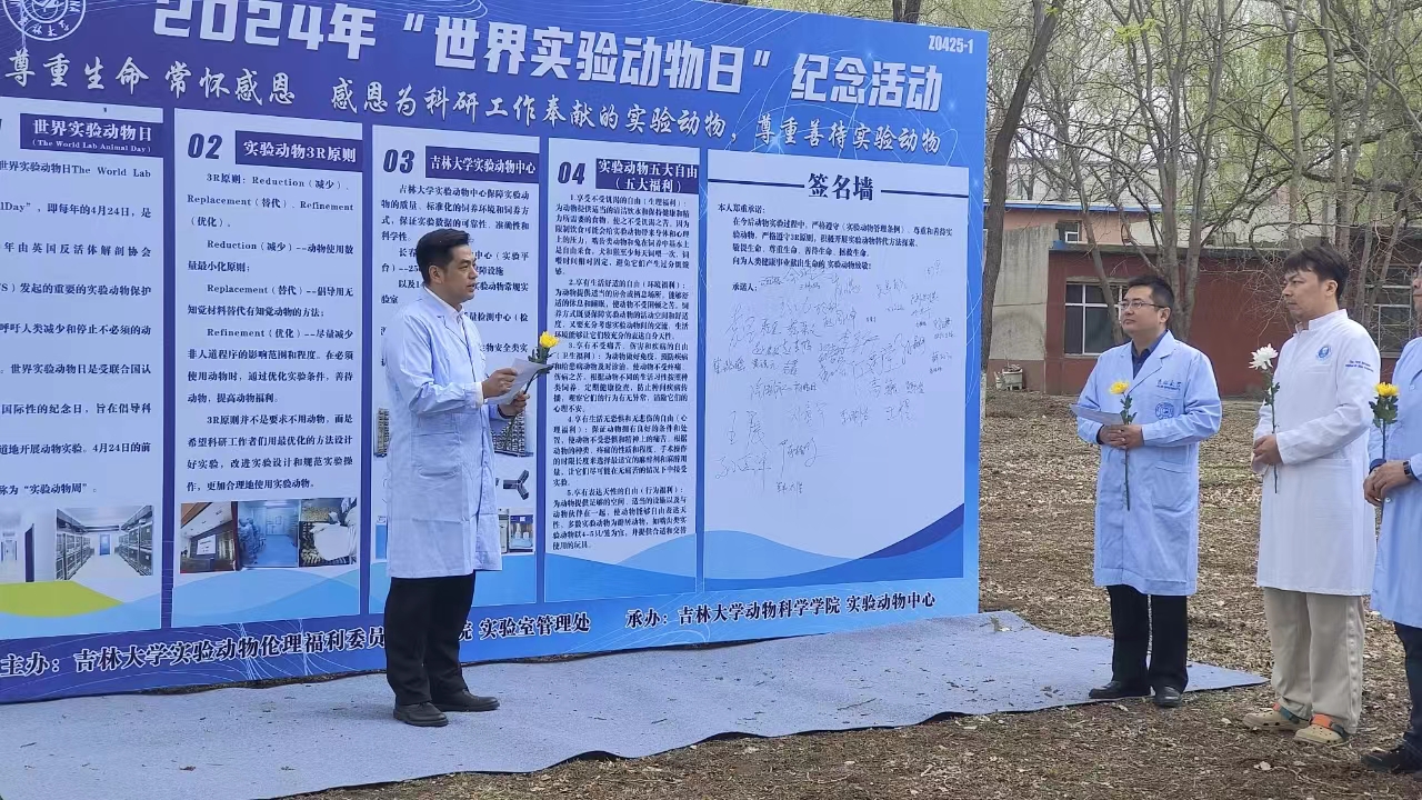 为深入贯彻落实中共中央办公厅、国务院办公厅印发的《关于加强科技伦理治理的意见》,切实加强实验动物规范生产和使用,2024年4月24日9时30分,由实验室管理处、科研院、beat365英国官网网站实验动物福利伦理委员会主办,beat365英国官网网站实验动物中心、beat365英国官网网站承办的“世界实验动物日”纪念活动在和平校区实验动物慰灵碑前举行。学校实验室管理处副处长孙翔宇、科研院科技管理办公室副主任董双石、beat365英国官网网站院长孙博兴、副院长张明军、副院长袁宝及校内众多对实验动物心怀敬意的师生参与本次活动。本次活动由袁宝主持。
