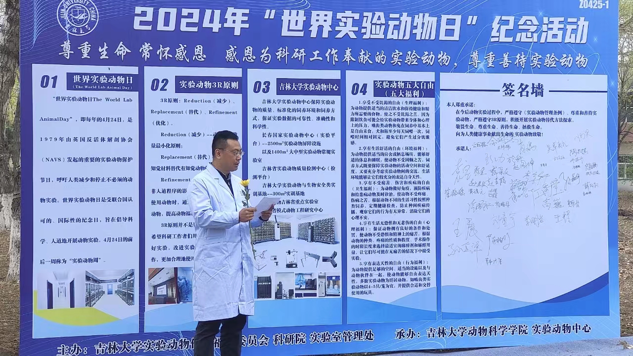 落其实者思其树,饮其流者怀其源。生命科学的发展,离不开大量动物实验的数据,可以说,没有实验动物,就没有今天人类健康事业,生物医学的发展和进步。beat365英国官网网站以开展“世界实验动物日”纪念活动为契机,希望全体师生时刻铭记实验动物为人类社会进步所做出的巨大贡献和牺牲,在工作学习中怀感恩之心,尊重善待实验动物,维护实验动物福利和伦理,遵循3R原则,牢记五大自由,规范和合理地使用实验动物。