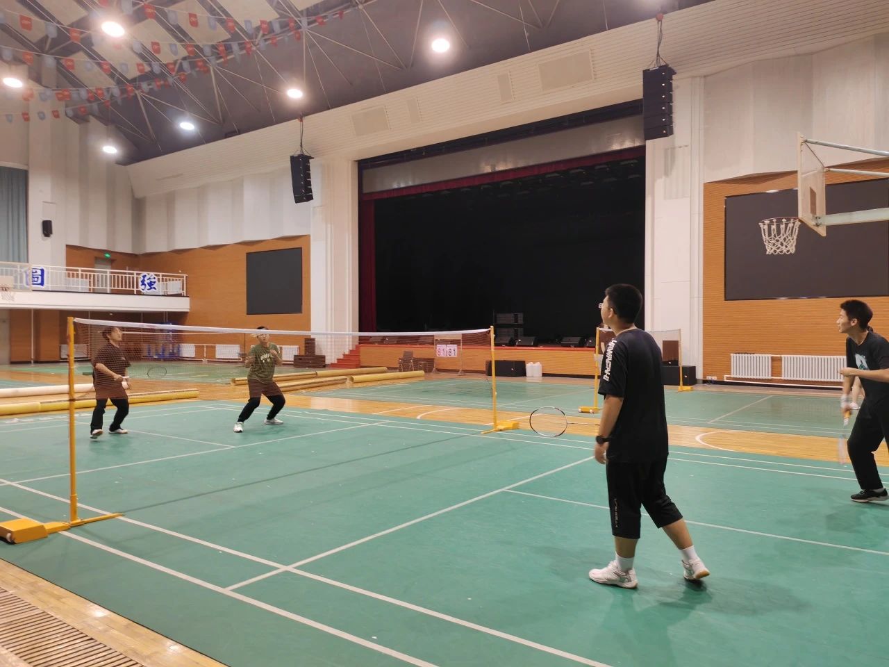 经过激烈对抗,篮球比赛的最终结果为:研究生队获得冠军,大二队获得亚军,大一1、2队分别获第三和第四名。
