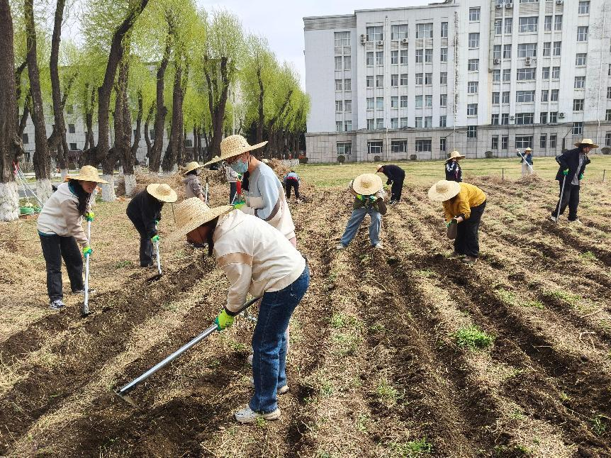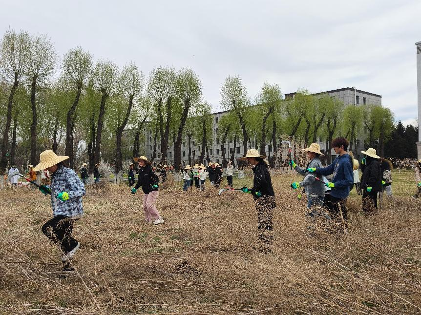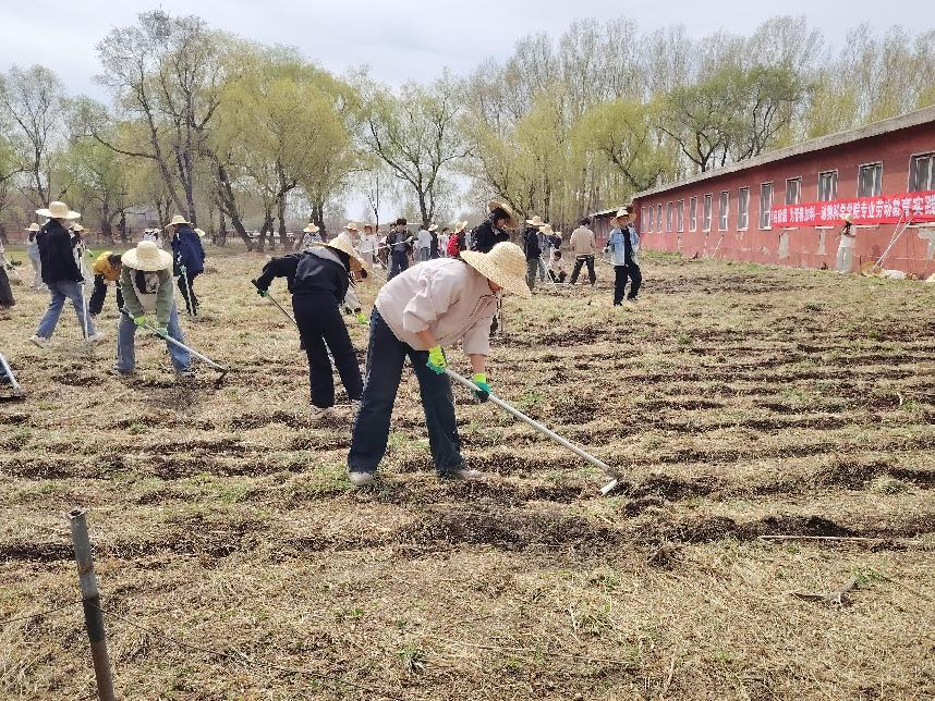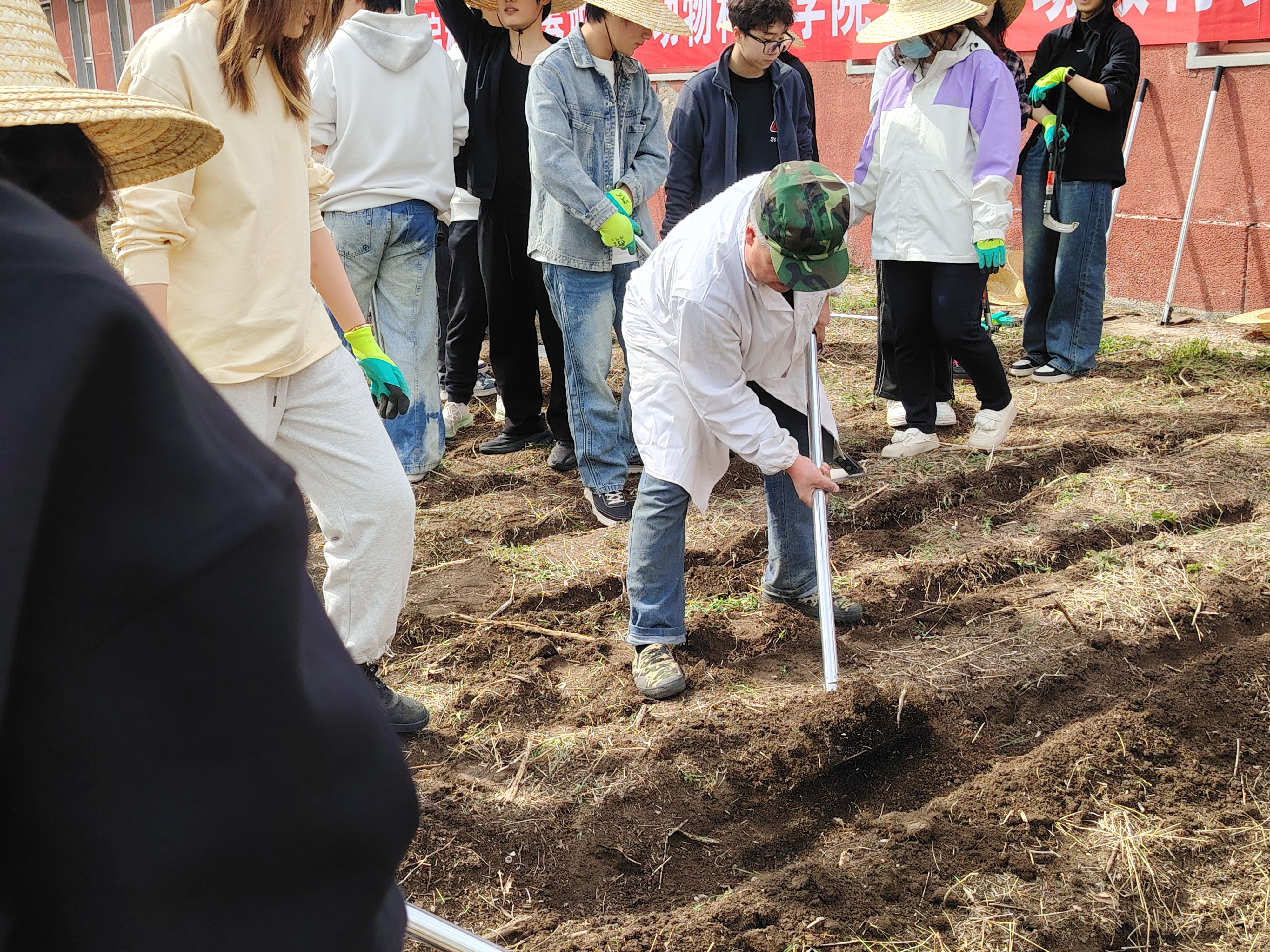 在动手实践环节,学生们在沈景林教授的指导下规范使用农具,分工协作,完成除草、耙地、垄沟及播种等操作。挥动锄头、撒下种子的每一个动作,不仅是对传统农耕智慧的传承,更是对劳动精神的身体力行。伴随着汗水洒落大地,同学们深刻体会到劳动人民的辛苦与执着,也坚定了将专业所学服务三农事业的理想信念。