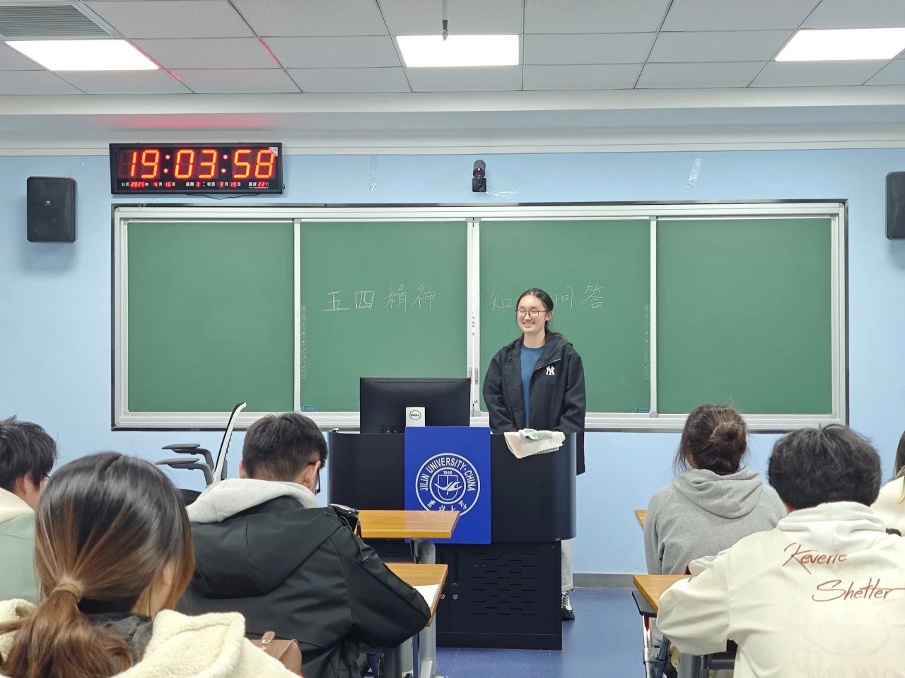 同日,2022级三班在线上平台共同观看央视纪录片片段《五四运动——青年觉醒的力量》并围绕“新时代青年应如何传承五四精神”展开自由讨论,最后,还进行了五四知识趣味问答,令团日活动在寓教于乐的氛围中落下帷幕。