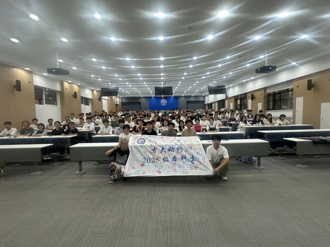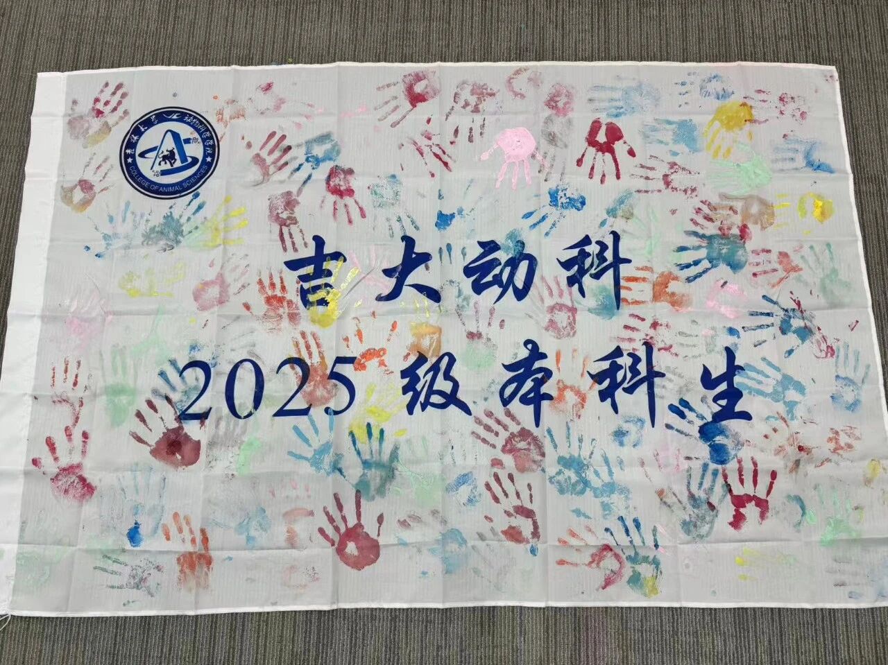 在会议临近结束时,动科学子们依次上前,于印有学院院徽的旗帜上留下了各自的手印。印满手印的年级旗帜不仅标志着他们已经成为动科大家庭的一份子,更是动科2025级本科新生团结一致精神的显著体现。