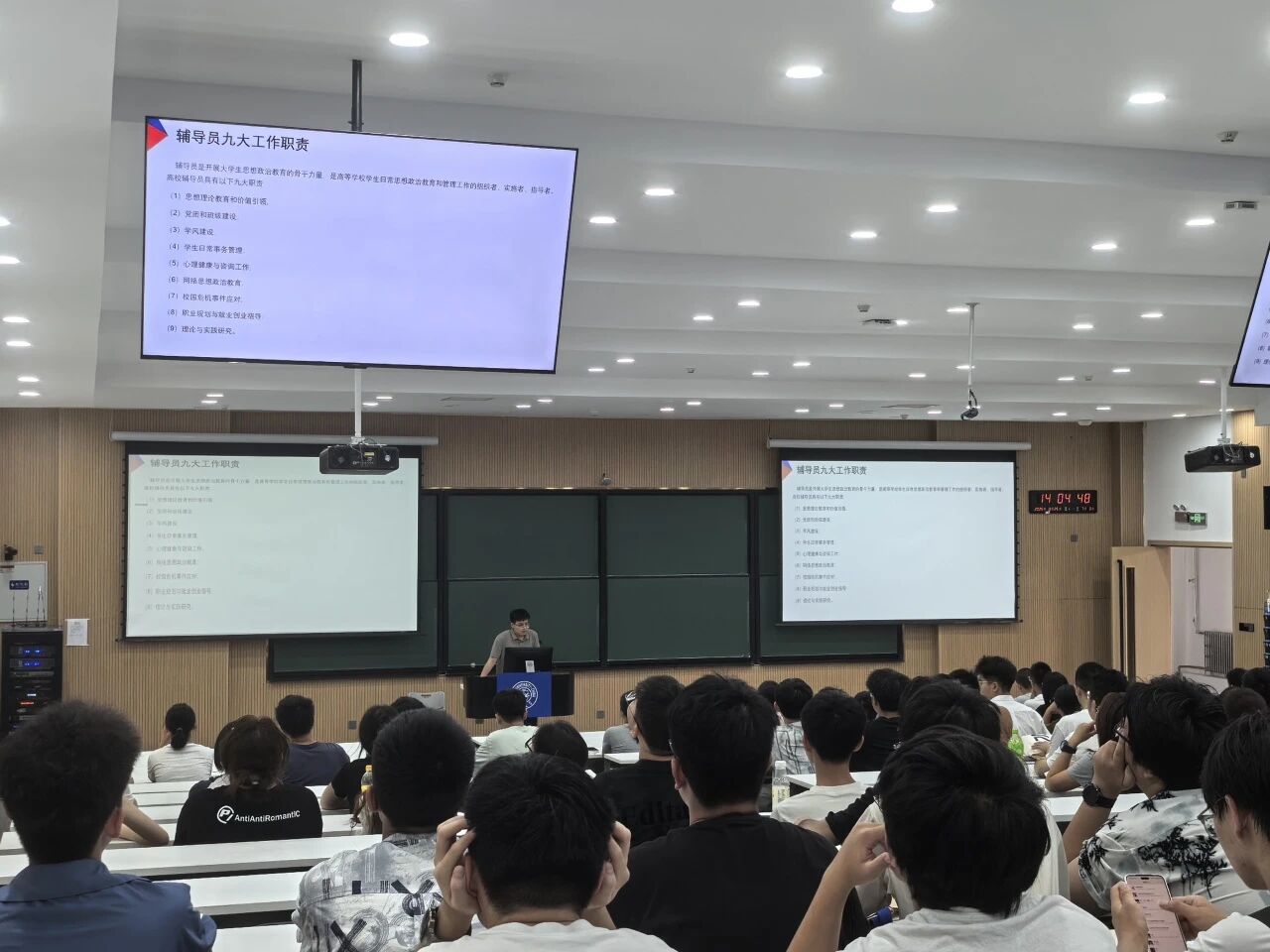 大会伊始,辅导员尹暄齐向全体同学介绍了辅导员的工作职责。他表明,作为辅导员,主要负责学生的思想政治教育、学业指导、生涯规划、心理辅导、党团及班级建设以及日常事务管理等九个维度工作,将全力以赴为同学们的成长成才提供保障。