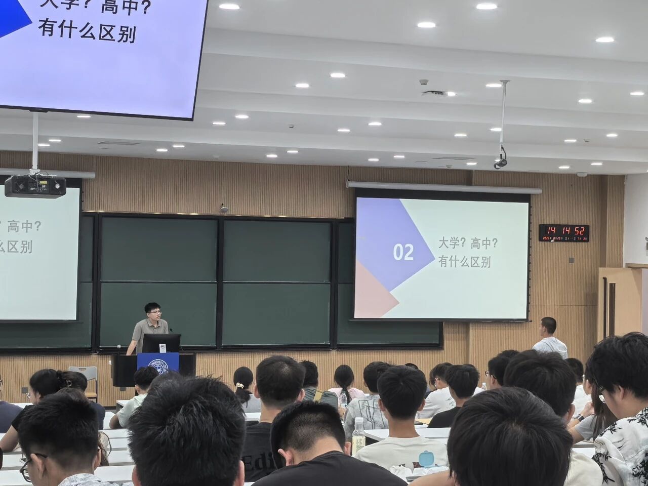 随后,辅导员尹暄齐着重阐述了大学与高中的差异。他从学习生活、奖助学金、资助政策和请假离校等多个维度进行介绍,他期望同学们能够尽快实现角色转变,并诚挚寄语新生三点,一是要培养学会独立思考与自主学习的能力;二是要砥砺自强诚实品格,提升道德修养;三是要学会与人沟通,培养集体荣誉意识和团队协作精神。