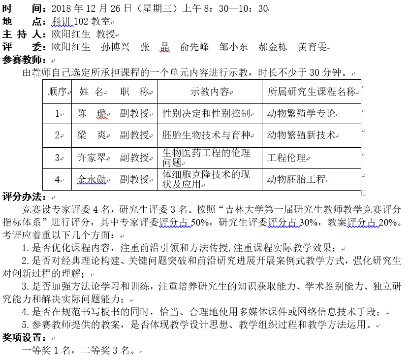 beat365英国官网网站第一届研究生教师教学竞赛安排及程序