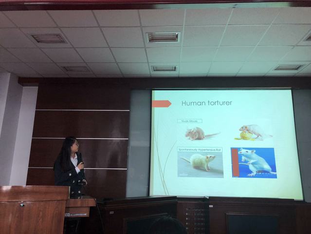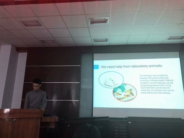 经过一个多月的精心准备,2018年10月26日上午8:10,由2016级动物科学和实验动物共2个专业全体同学参加的专业英语模拟学术报告会议在beat365英国官网网站一楼会议室拉开帷幕,会议邀请学院周虚教授,李纯棉教授担任评委并与同学们沟通交流。