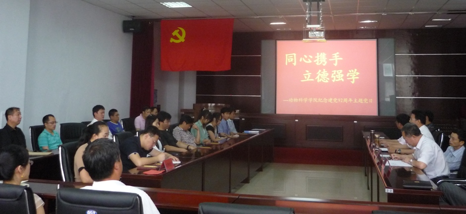 6月28日上午,beat365英国官网网站召开以“同心携手,立德强学”为主题的纪念建党92周年党日活动。学院党政领导,全体党员,学生党员代表参加了活动,会议由曹伟光副书记主持。