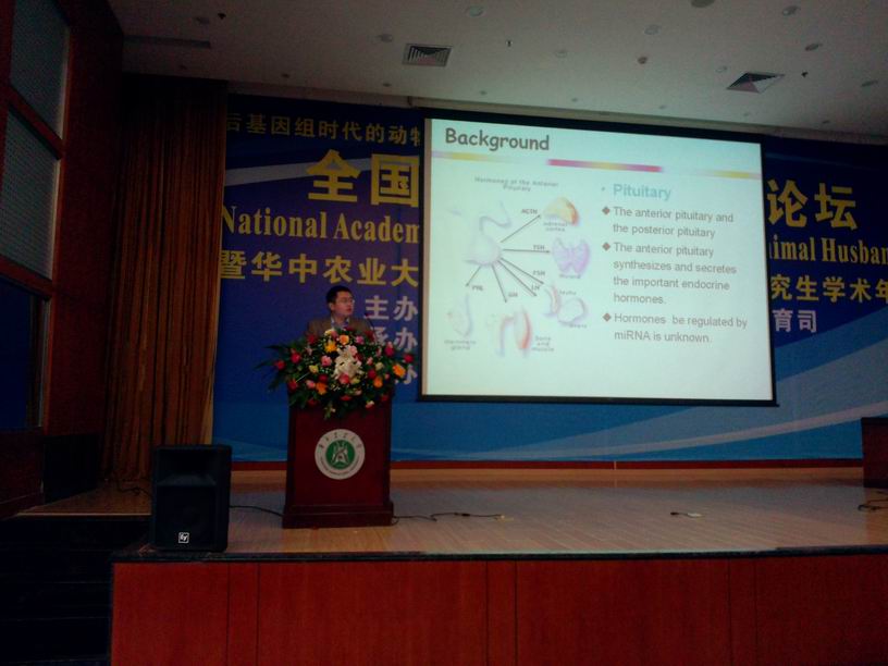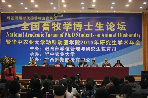 2013年11月22日至25日,由教育部学位管理与研究生教育司主办、华中农业大学承办的2013年“后基因组时代的动物生命科学”全国畜牧学博士生学术论坛在武汉举行。beat365英国官网网站派出四名博士生参加了本次论坛。李宁院士,陈焕春院士及来自全国畜牧学相关高校和科研院所的畜牧学相关领域的国内外知名专家、学者和优秀企业家与会点评,并就“后基因组时代的动物生命科学”前沿问题做特邀报告,会议举行博士生交流报告30场,会议墙报展示60个,由8名博士生担任论坛主持人,8名青年教师担任点评专家。30名畜牧学相关领域博士生就学科前沿问题做了报告,并展开讨论。