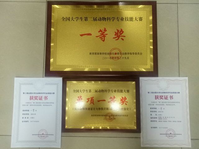 为进一步推进高等院校动物科学专业实践教学改革和实践教学体系建设,加强专业技能和实践动手能力培养,全面提高大学生的综合素质和培养质量,由教育部动物生产类专业教学指导委员会主办的第二届全国大学生动物科学专业技能大赛于2017年10月27日至10月29日在西北农林科技大学(杨凌)隆重举行,来自全国66所高校的328名大学生参加。经过一天的激烈角逐,我校beat365英国官网网站代表队在66个参赛高校中表现优异,荣获团体一等奖,单项一等奖。