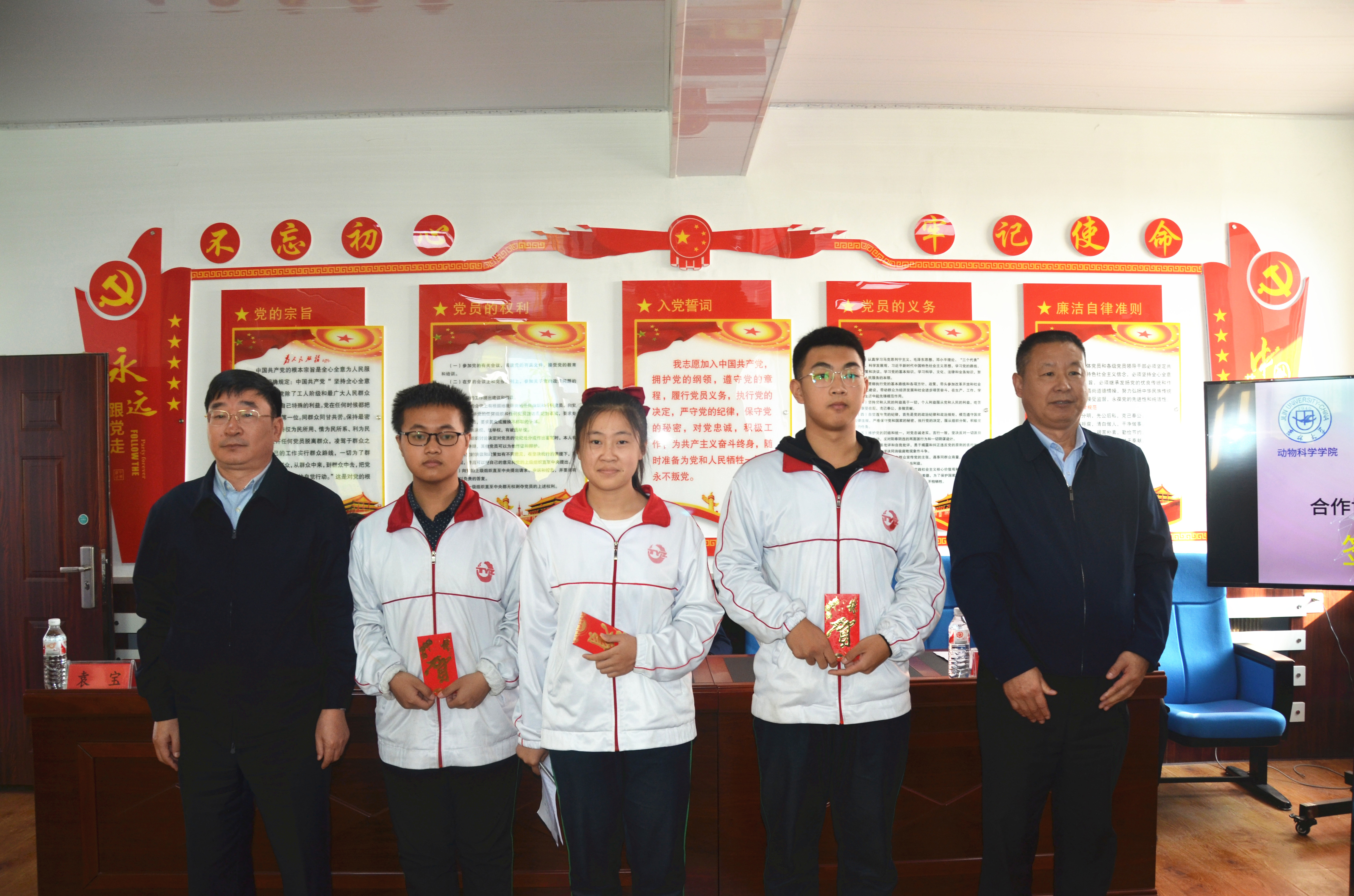 仪式由通榆一中党支部副书记蔺树学同志主持,蔺书记向与会人员介绍了通榆一中和此次受助学生的基本情况。beat365英国官网网站副院长张明军教授详细介绍了学院与通榆一中此次合作和捐资助学的目的,通榆一中2019年被评为beat365英国官网网站“优秀生源基地”,通过杨琳同学,学院与通榆一中取得了联系,希望通过资助,为一中的学生们减轻一些生活上的负担,让他们能全身心投入到学习,努力实现自己的梦想。
