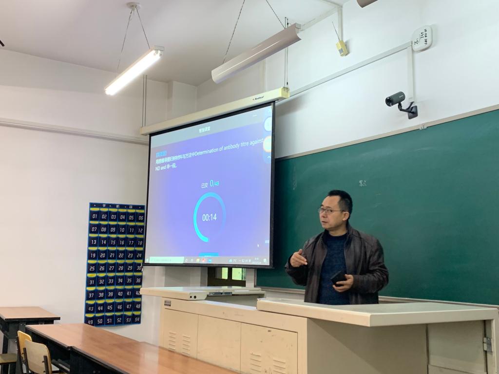 创新理念,深植于周虚教授对教学方法和教学内容的不断追问、思索与实干。《动物繁殖学》是学校最先开始慕课建设的农科类课程,于2015年获得beat365英国官网网站精品慕课建设计划支持。课程目前已在中国大学MOOC、课堂派、爱课程等近十个平台上线,累计学习人数达到两千余人。经过多轮教学实践与探索,《动物繁殖学》已能流畅实现翻转课堂效果,学生提前利用视频资源学习知识性内容,为课堂上进行能力培养与人格塑造留出空间。《专业英语》课堂则是信息化手段与过程性评价的集中展现。上课时,周虚教授握着手机站在台前,控制投屏、随机提问、收集思维导图……推进教学过程的信息化操作他早已十分熟悉。到了期末,选修《专业英语》课程的同学们,不需要猛背单词或作文模板,他们或是在查找文献、形成观点、讨论观点等综合性训练过程中展示英语学术能力,或是通过排练展示生活场景的英语短剧,将自己对生命、伦理、科研的思考融入学习的过程中,联通专业能力与课程思政的结点。