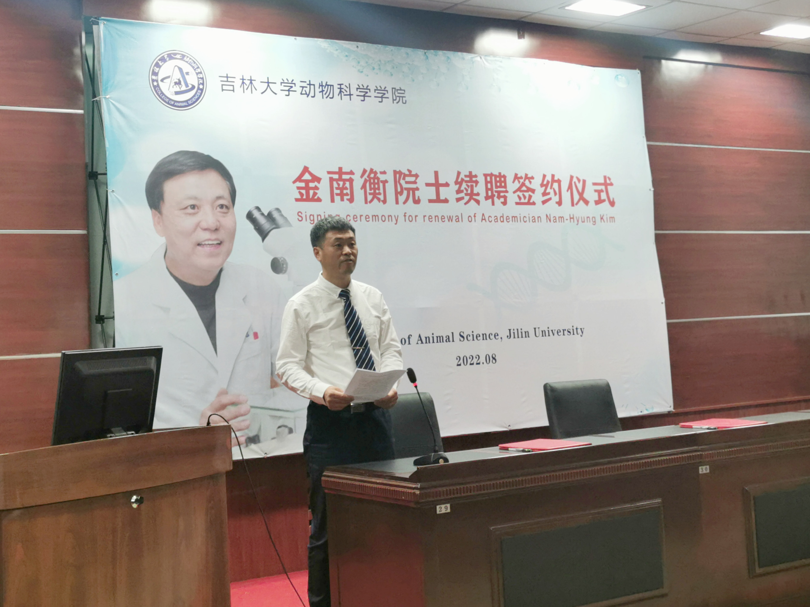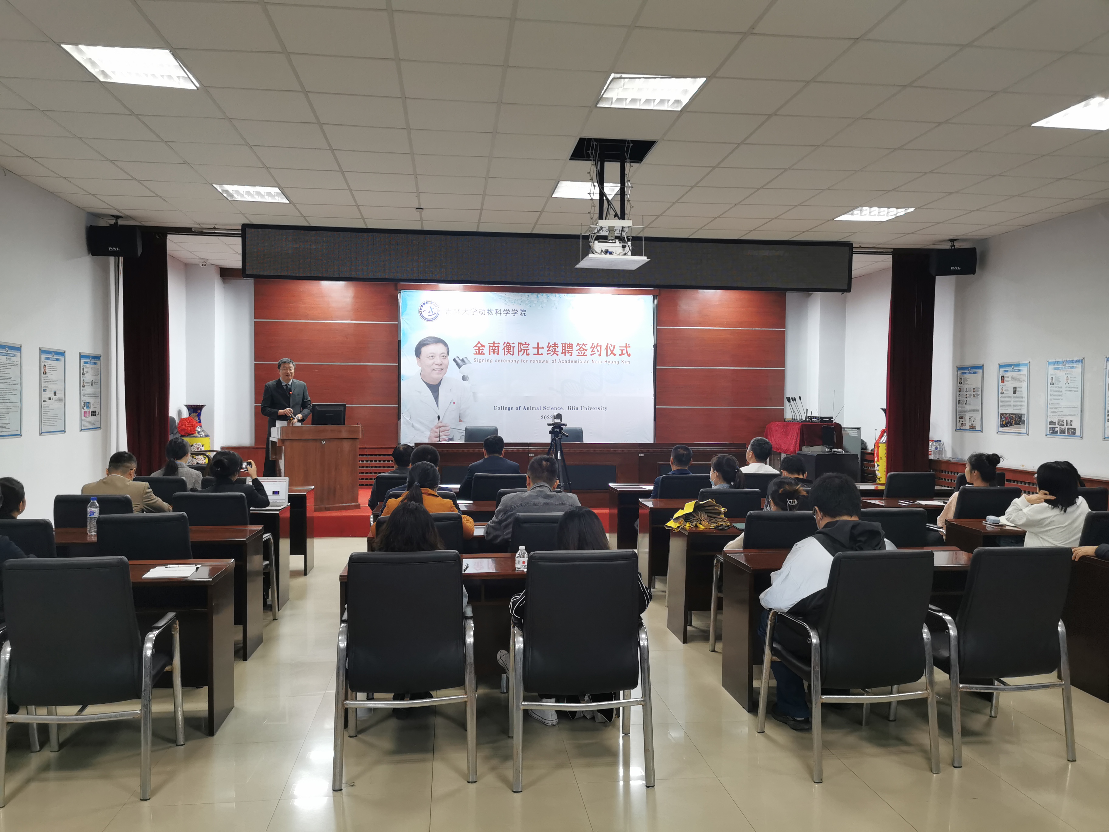8月29日上午,beat365英国官网网站在学院一楼会议室举行韩国科学与技术院院士、韩国国立忠北大学金南衡教授续聘签约仪式,学院领导班子成员和师生代表线下参加了仪式,全体2022级本科生和研究生新生线上参加,仪式由副院长张明军教授主持。