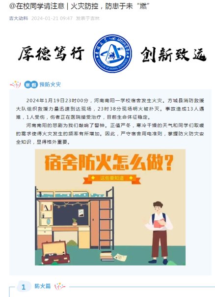 学院要求各单位继续严格落实各项安全管理制度,进一步督促寒假期间留校学生严守安全准则,提升学生的安全意识,防患未然,营造安全的实验和住宿环境!