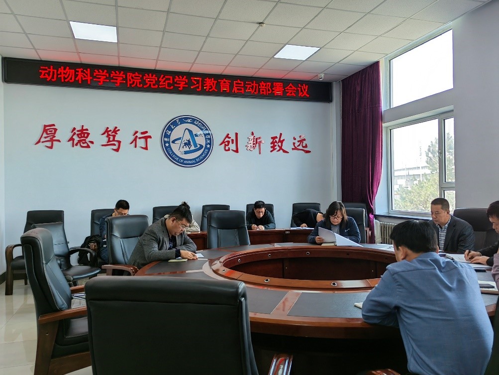 学院党委书记高福和同志作了动员讲话和工作部署。高书记在讲话中指出,全体党员干部要统一思想,提高认识,深刻理解开展党纪学习教育的重大意义,从坚定拥护“两个确立”、坚决做到“两个维护”的政治高度,认识高标准高质量开展党纪学习的重要性。要准确把握开展党纪学习教育的目标要求和重点任务,扎实推进学院党纪学习教育的深入开展。要原原本本的学习《条例》,党员干部要在学习教育中做表率、立标杆,学在先、做在前。各党支部要认真做好部署动员,加强组织领导,重点抓好《条例》学习、交流研讨、警示教育、讲好纪律党课等重点环节落实,切实使全体党员干部学纪、知纪、明纪、守纪,积极营造遵规守纪的浓厚氛围。要做好学教结合,把党纪学习教育与学院中心工作紧密结合,与“强农兴农行动”紧密结合,与推动学院高质量发展紧密结合,以更加严明的纪律为学院建设发展提供坚强保障。