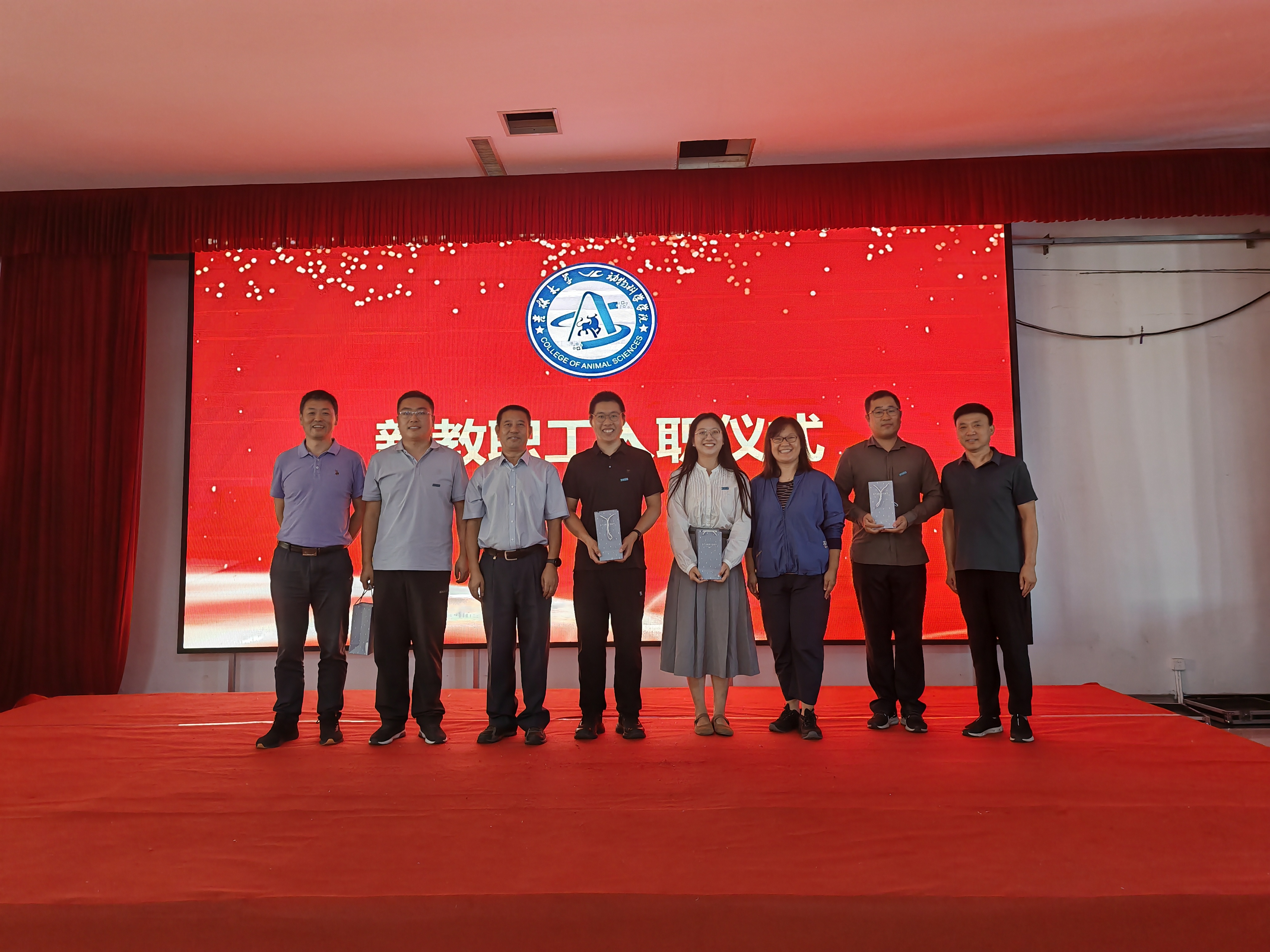 随后,举行新教职工入职仪式和教师荣休仪式。班子成员为2024年新入职教职工代表佩戴beat365英国官网网站校徽并发放学院纪念品,党委书记高福和为退休教师沈景林教授颁发荣休证书,青年教工代表杨琳为沈景林教授敬献鲜花并合影留念。沈景林教授在退休感言中回顾自己32年的从教经历,用3个感谢,3个不舍和4个祝愿倾诉了自己对学院、对师生和对畜牧学科的深切情感,在鲜花和掌声中正式告别讲台,迈向人生新的篇章。
