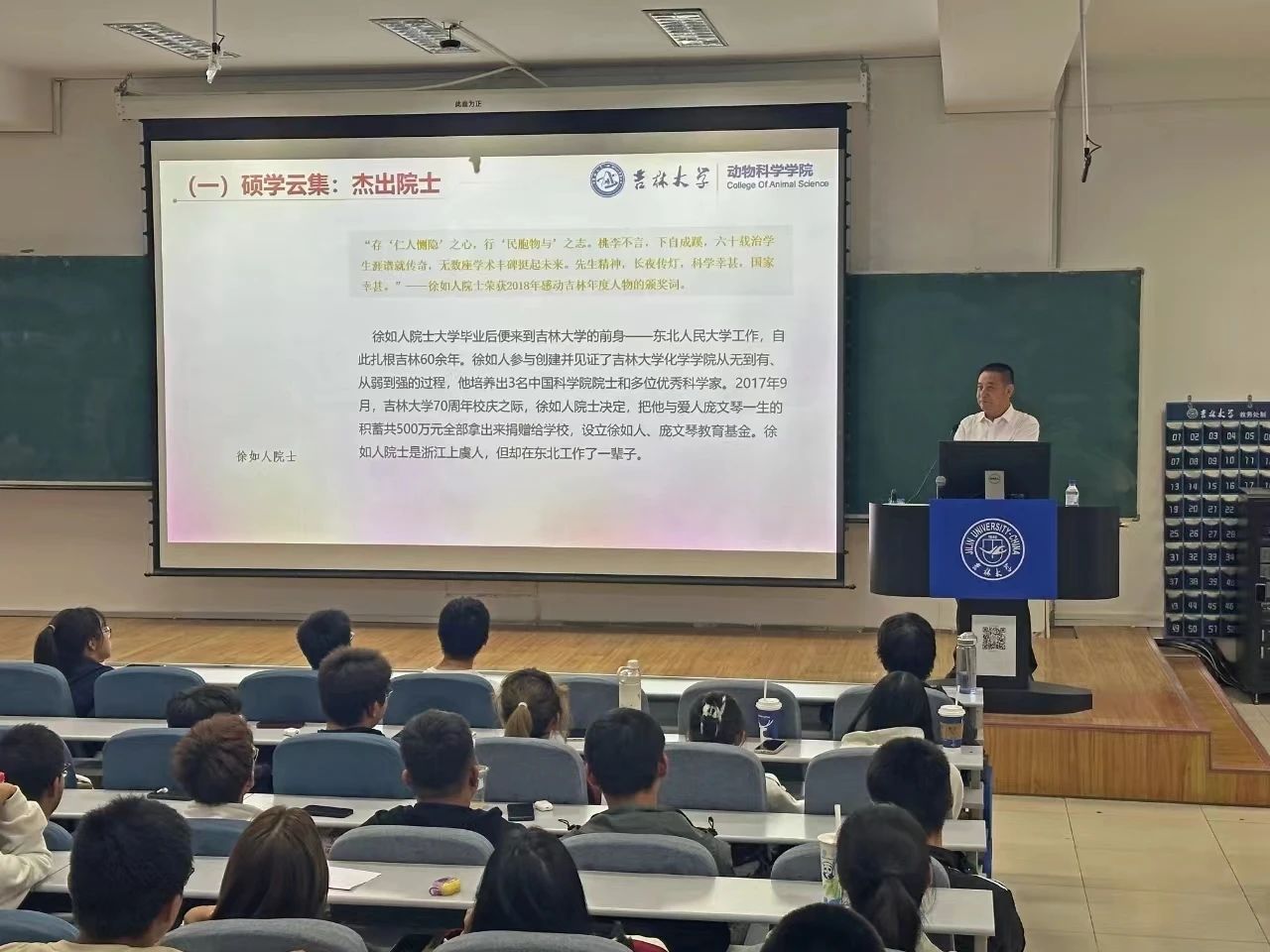 高福和书记以“赓续‘又红又专’吉大基因,做强国有我的新时代大学生”为题展开授课。他向同学们阐述了“又红又专”的精神内涵,其中特别强调黄大年精神和北上精神,激励学子们汲取精神养分,树立知农爱农、学农为农、强农兴农的坚定信念与崇高使命。