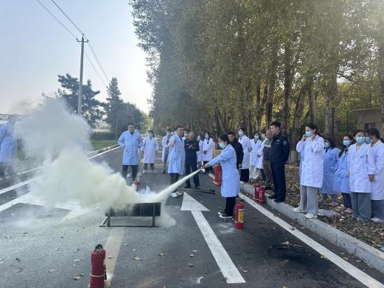 接下来,进行消防器材使用演练。冷国永副院长现场演示灭火毯的使用和如何使用干粉灭火器,在场人员实际操作使用灭火毯和灭火器,进行灭火使用练习。
