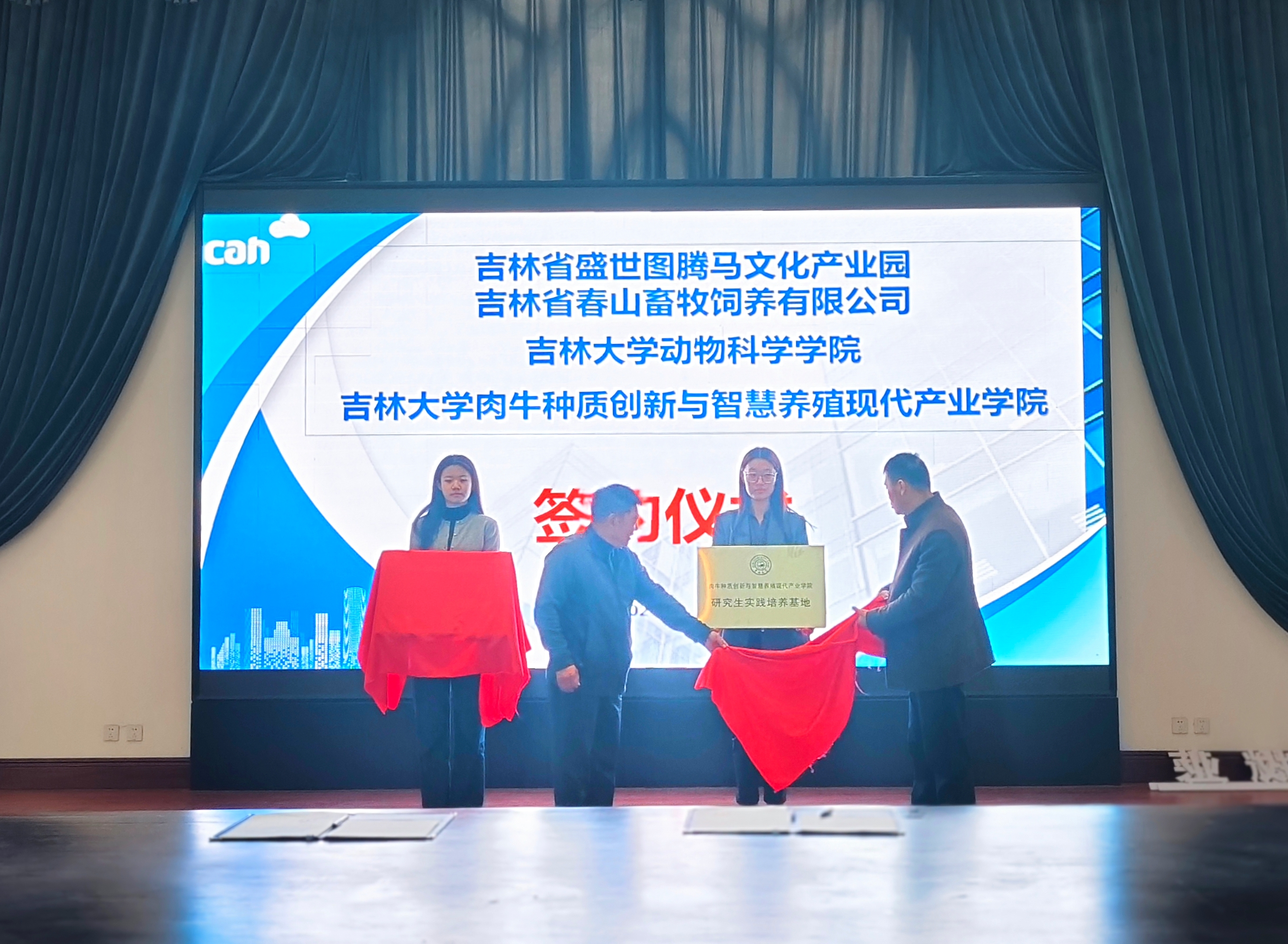 首先,双方举行合作签约仪式,beat365英国官网网站副院长张明军教授主持签约仪式,盛世图腾马文化有限公司董事长李赞和beat365英国官网网站院长孙博兴教授代表双方签字,并为合作基地揭牌。随后,双方就未来合作进行深入交流,在汗血马种繁育,饲养、马博物馆建设、西门塔尔种公牛站建设等方面达成多项合作意向。