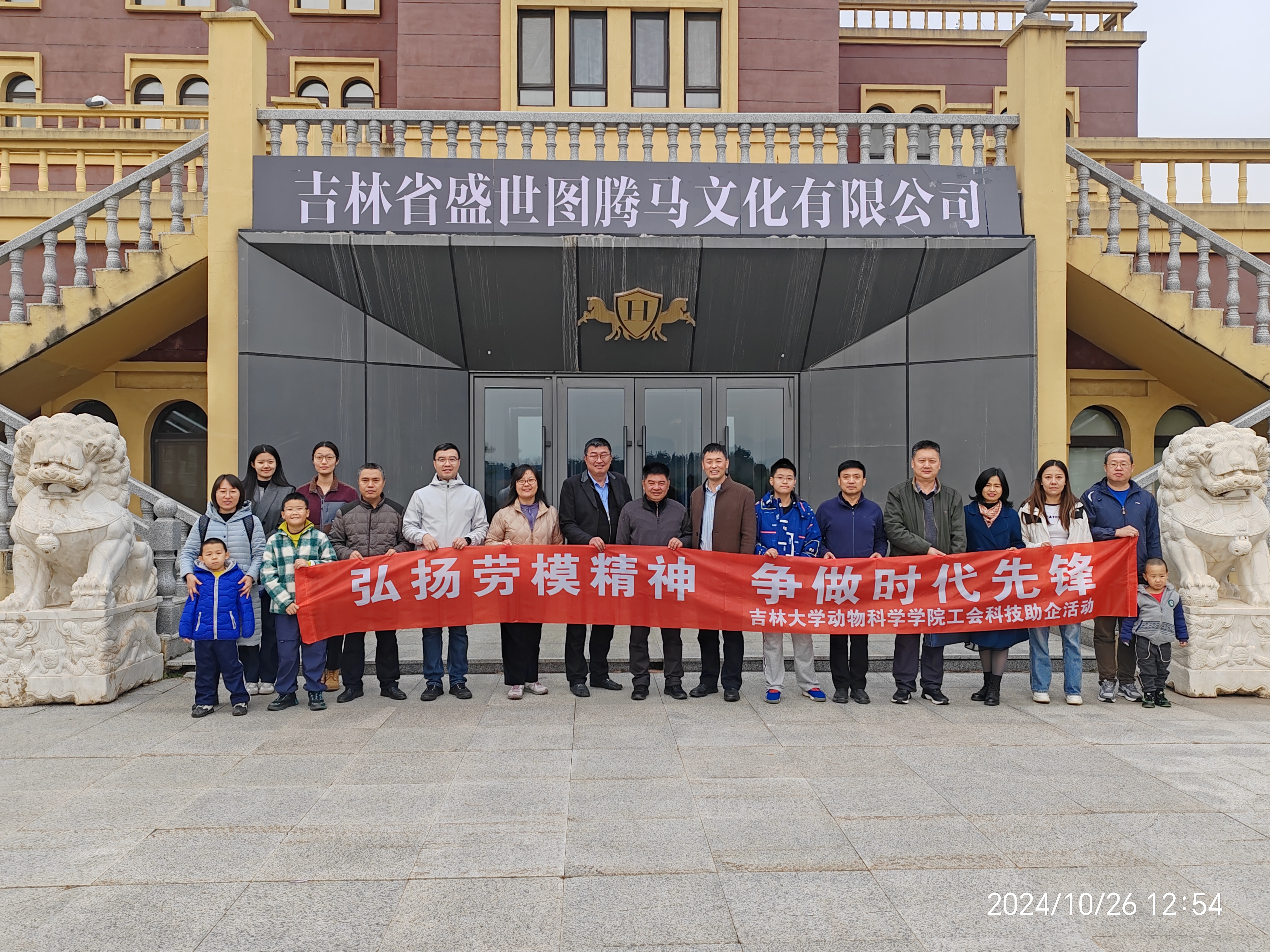 10月26日,beat365英国官网网站工会开展“弘扬劳模精神、争做时代先锋”科技助企活动,旨在通过与企业的互助合作,把学院的科技成果和企业的实际需求紧密结合,进一步落实“强农兴农”行动,让科技赋能企业,助力乡村振兴。吉林省盛世图腾马文化有限公司、春山畜牧饲养有限公司董事长李赞,beat365英国官网网站院长孙博兴教授、副院长张明军教授、党委副书记肖建荣、副院长冷国永及学院部分老师、工会积极分子出席活动。