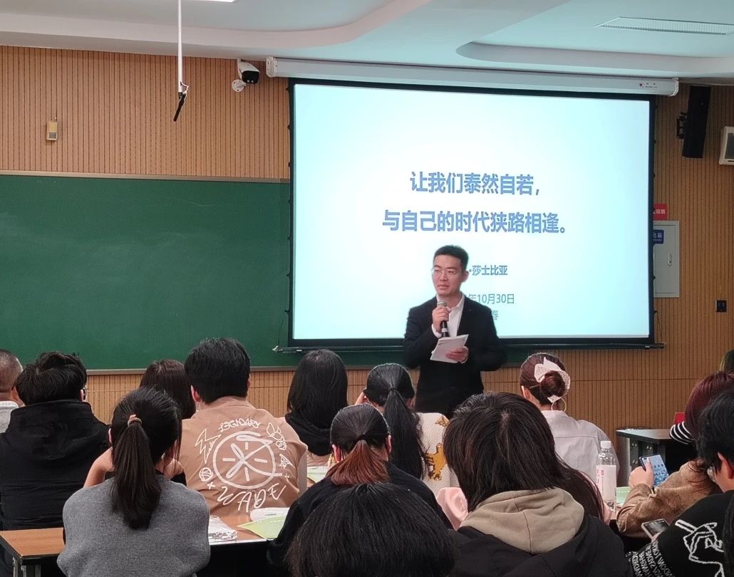 在职业生涯规划环节,中粮家佳康肉制品部总经理助理兼人力资源部总经理张鑫铸以《以始为终,赢在过程》为主题,从“怎么选择、怎么规划、怎么发展”等三方面阐述了职业生涯规划的重要性。他引用大量的实际案例,结合本人多年工作经验,鼓励同学们要了解行业行情,明确大学目标,了解专业对口岗位,积极参加专业实习实践,丰富履历和就业经验。