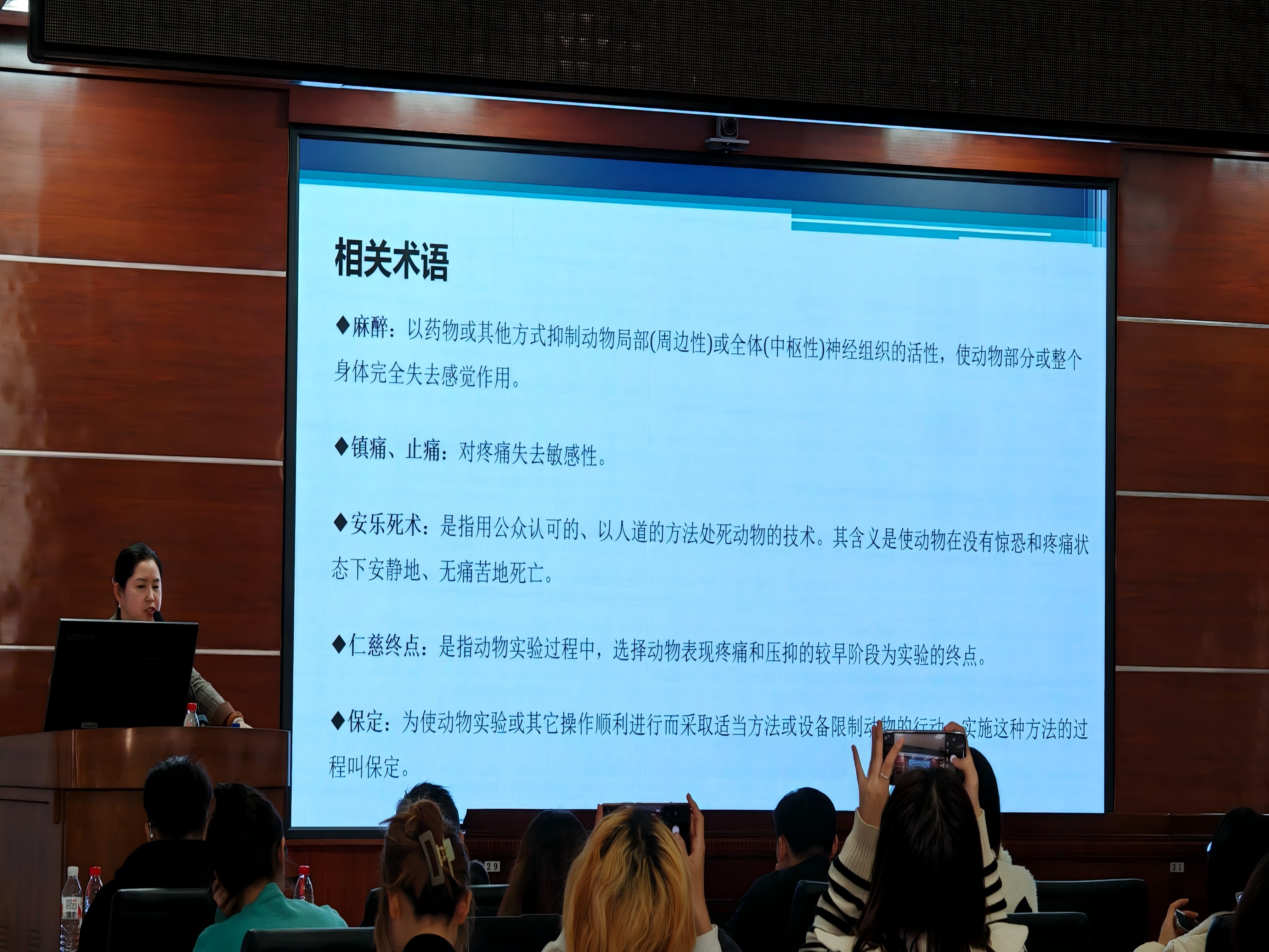 在实验动物设施准入培训环节,权福实老师为同学们作了开展动物实验前必备的《beat365英国官网网站实验动物福利伦理审查》申请的相关报告,对如何保障实验过程中动物福利以及申请实验动物福利伦理审查的程序、相关术语、填写注意事项作出了详细说明。