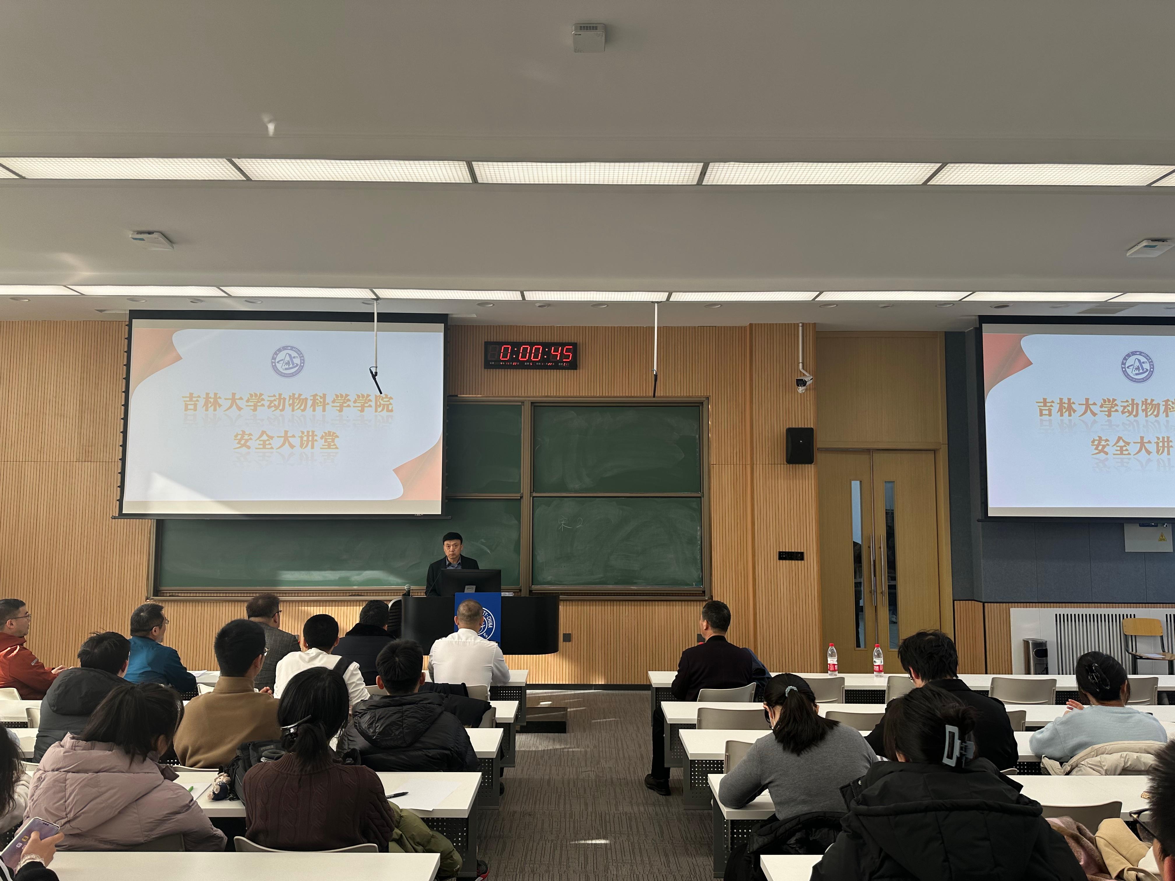 为进一步做好安全工作,提升师生员工的安全意识和自防自救能力,结合学院安全工作实际,动物科学学院2024年11月22日开展安全大讲堂活动。本次活动主要包括安全知识宣传教育和实验动物设施准入培训。活动特邀保卫处西区保卫办主任鲁钰锋、实验室管理处实验室安全管理科科长侯震、beat365英国官网网站实验动物部胡进平、权福实老师做本次活动主讲嘉宾。学院研究生、进入实验室的本科生参加此次活动,活动由beat365英国官网网站副院长冷国永主持。
