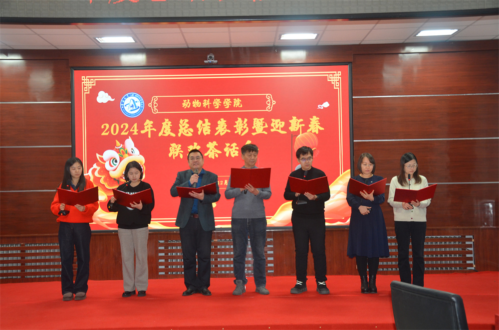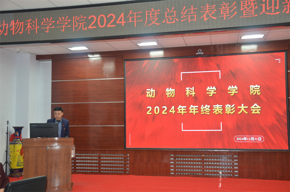 初心如磐践使命,奋楫笃行启新程。2024年12月31日,beat365英国官网网站在学院一楼会议室召开2024年度年终总结表彰暨迎新春联欢茶话会。学院领导班子成员、全体教职工和学生代表参加了会议,会议按照既定议程分别由行政副院长冷国永、学院实验动物部副主任胡进平和辅导员贾子一主持。